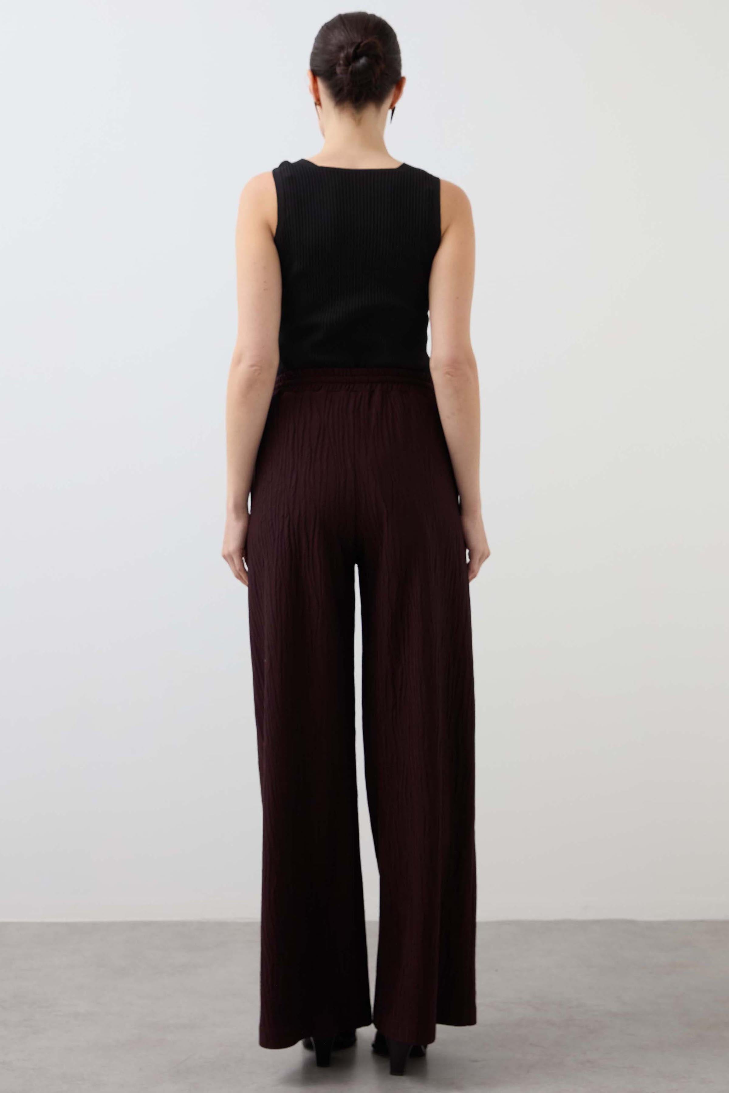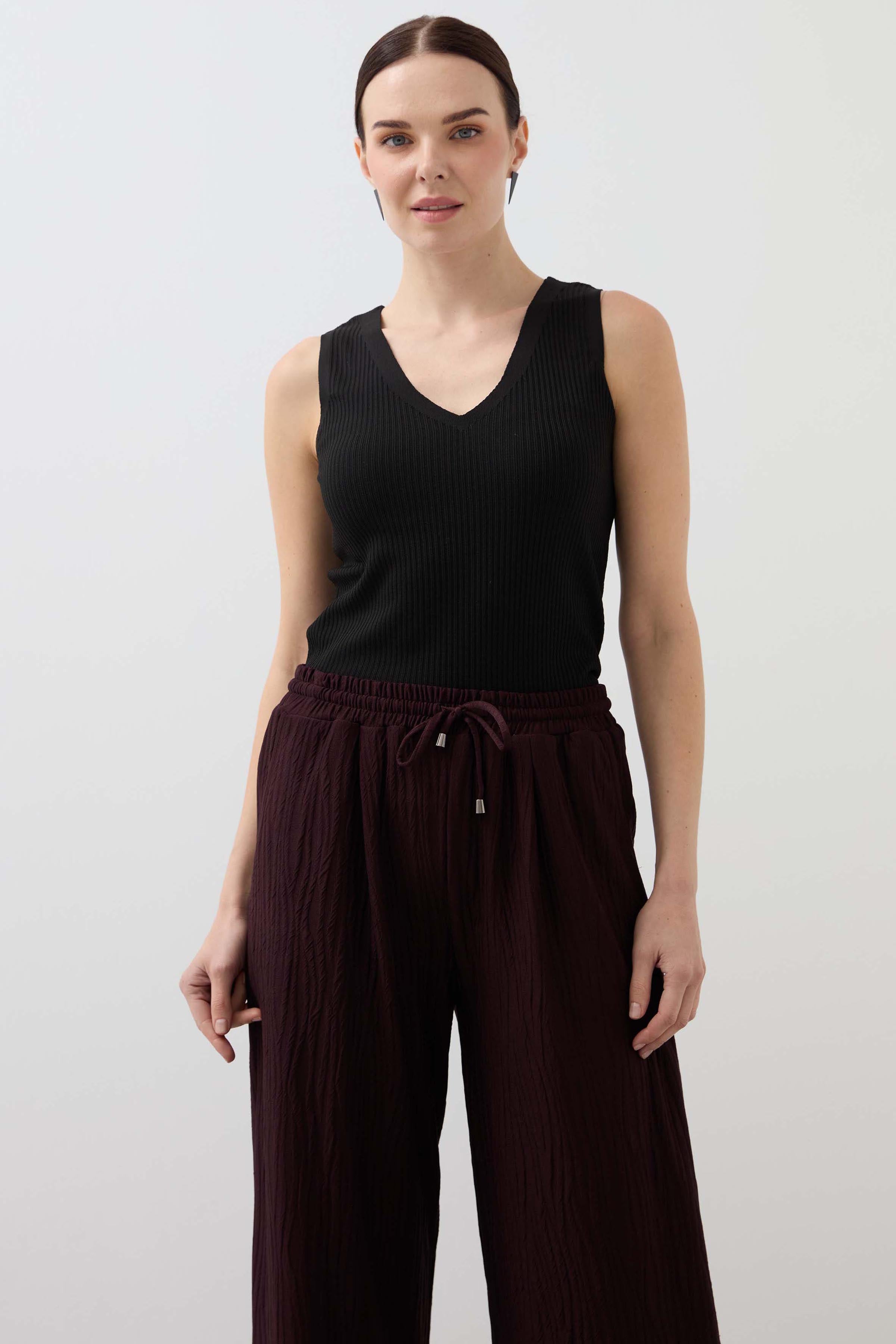 Elastic Waist Knitted Trousers - Burgundy