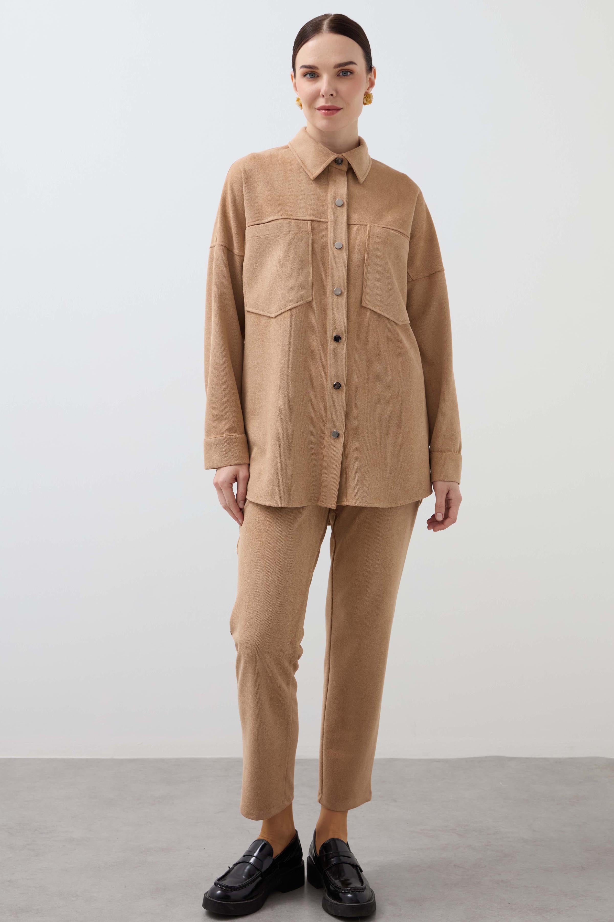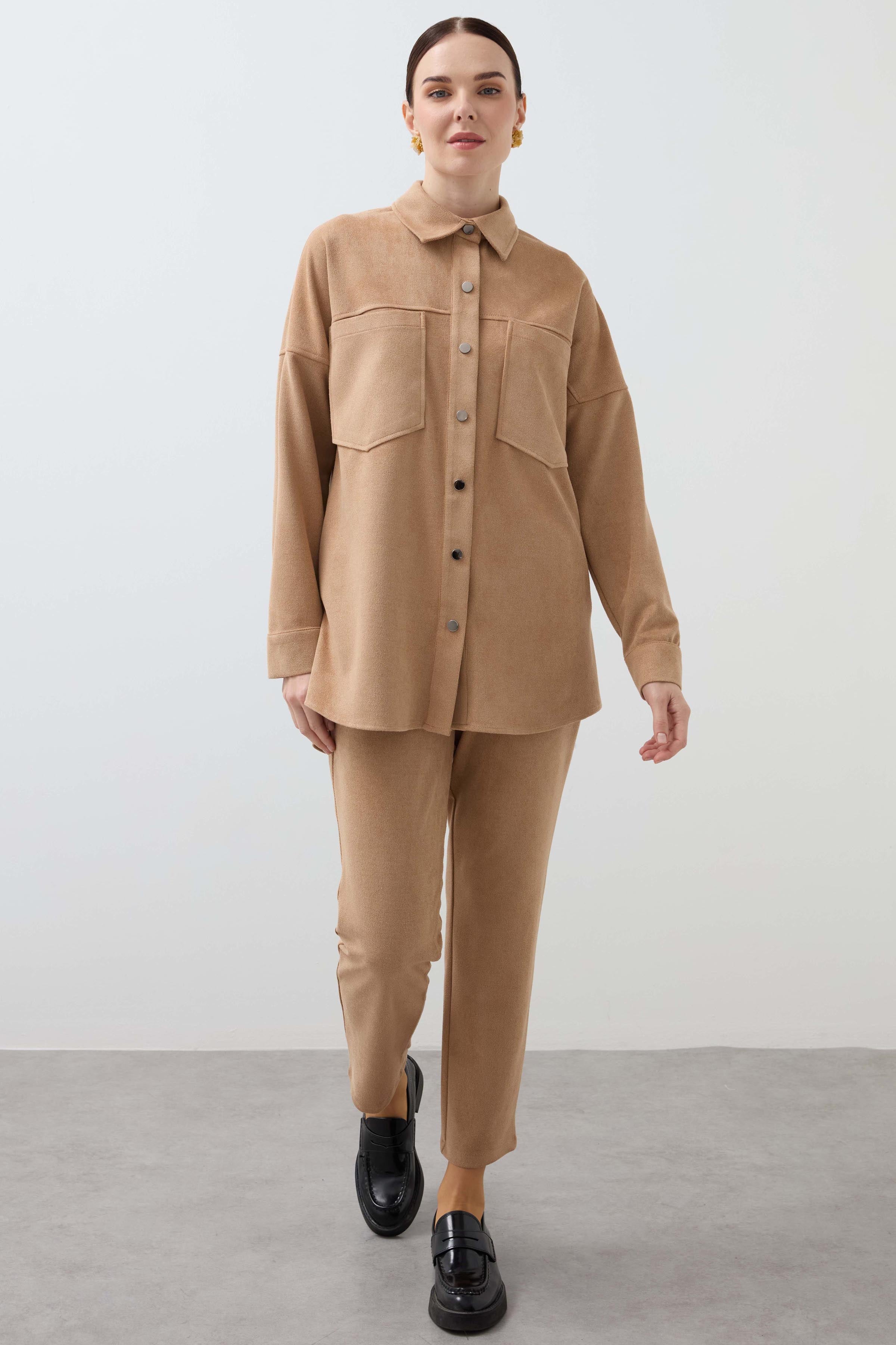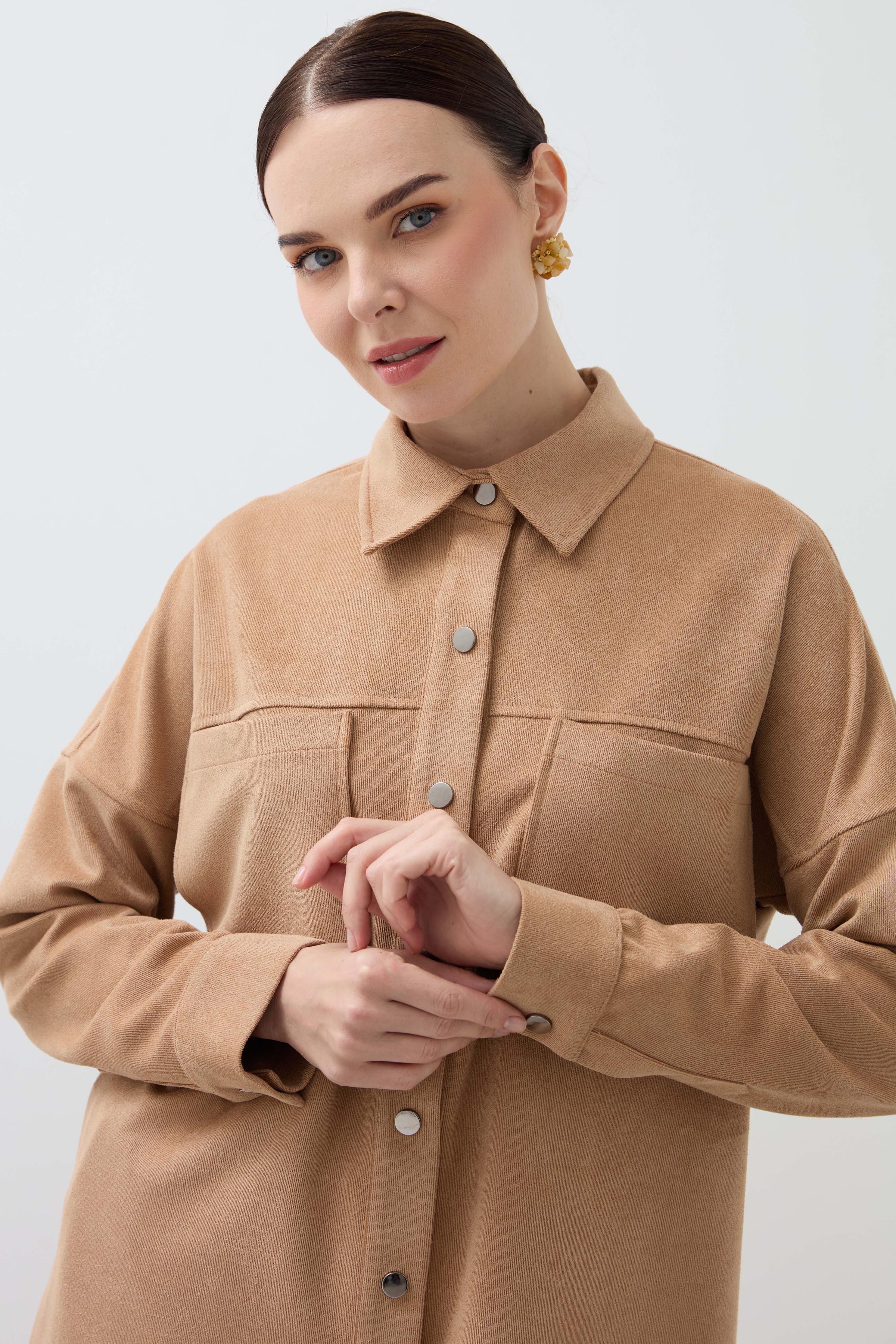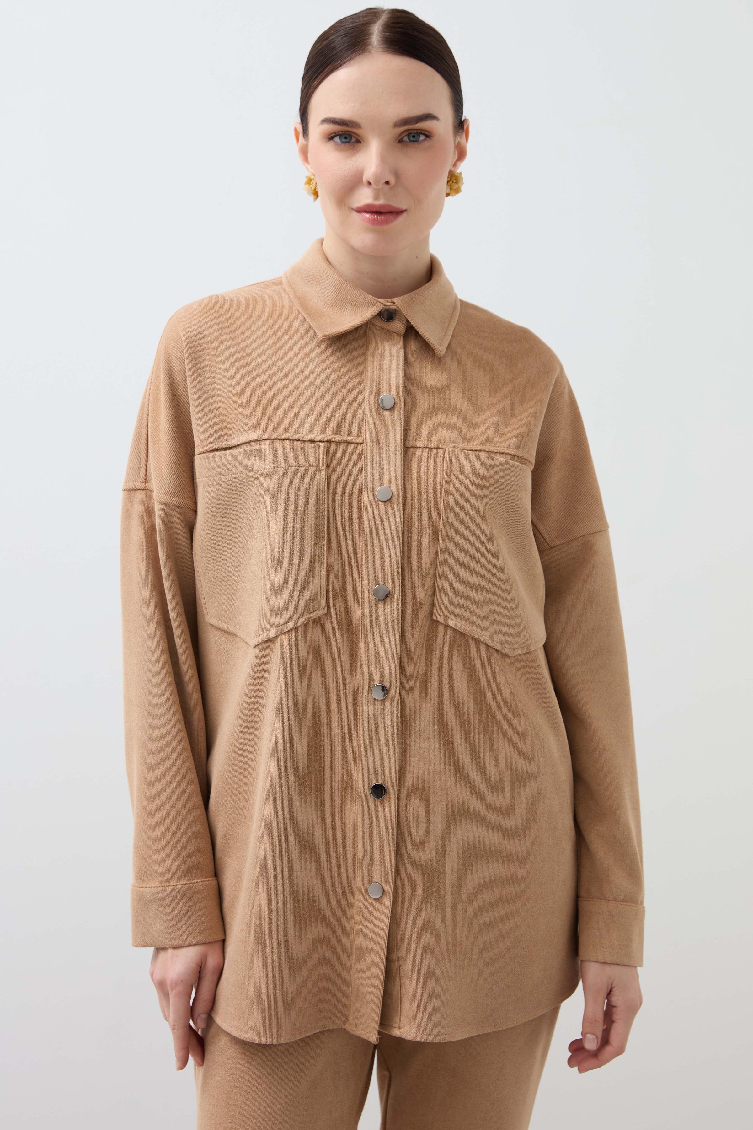 Snap-On Double Pocket Shirt - Camel