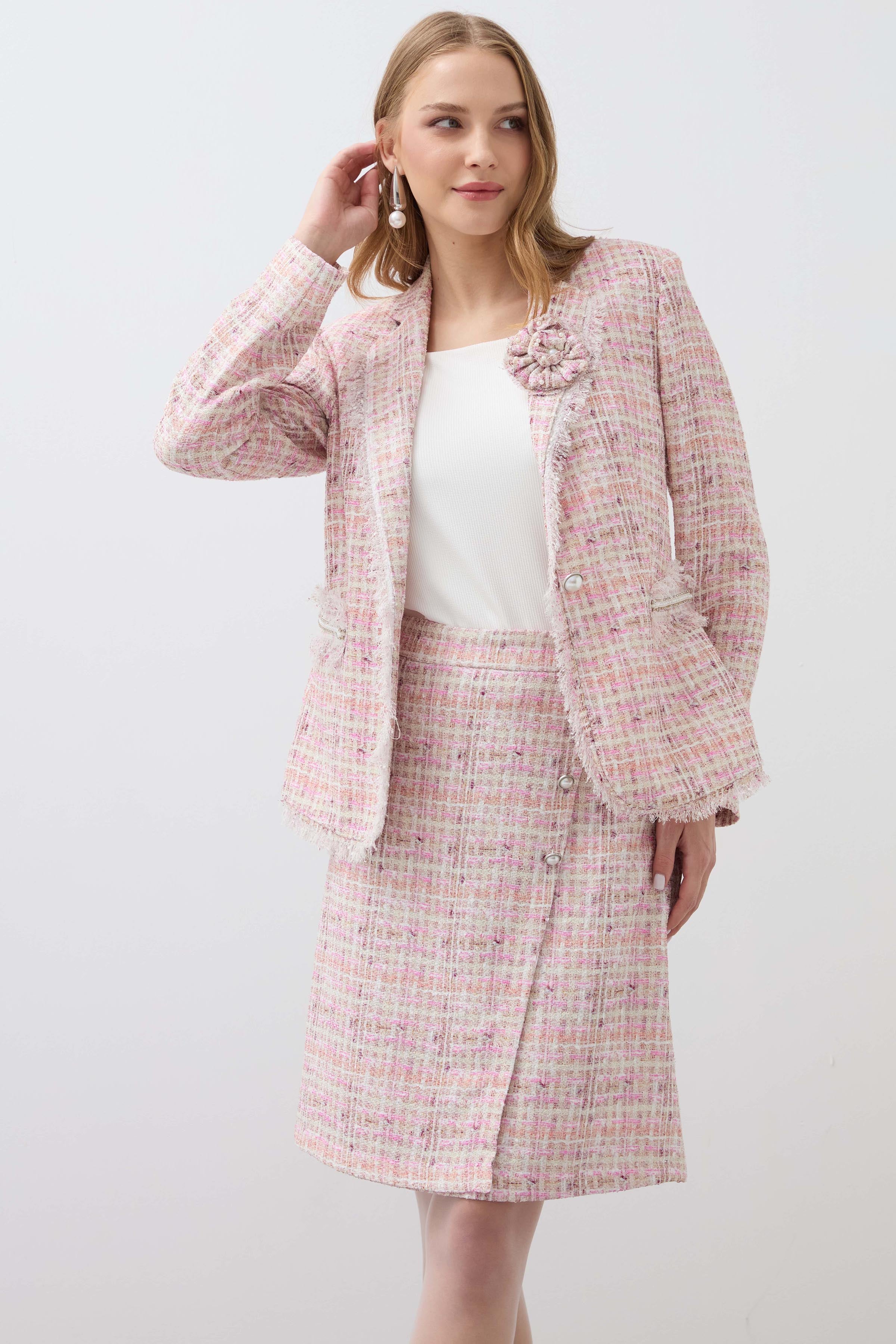 Plaid Buttoned Double Breasted Skirt - Pink