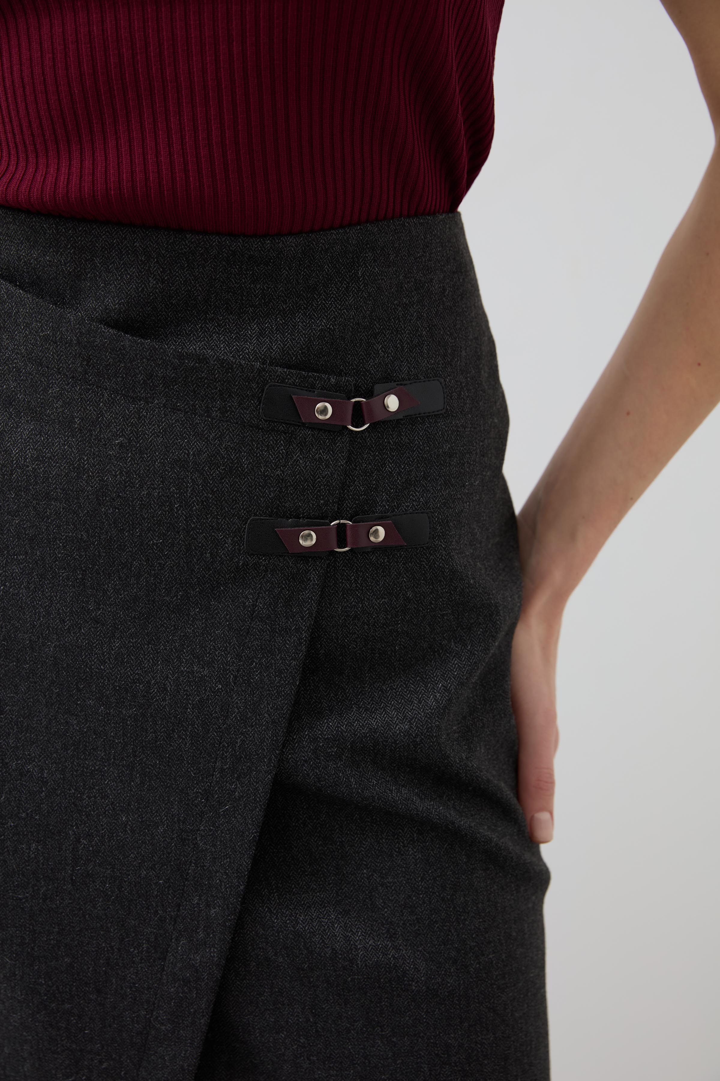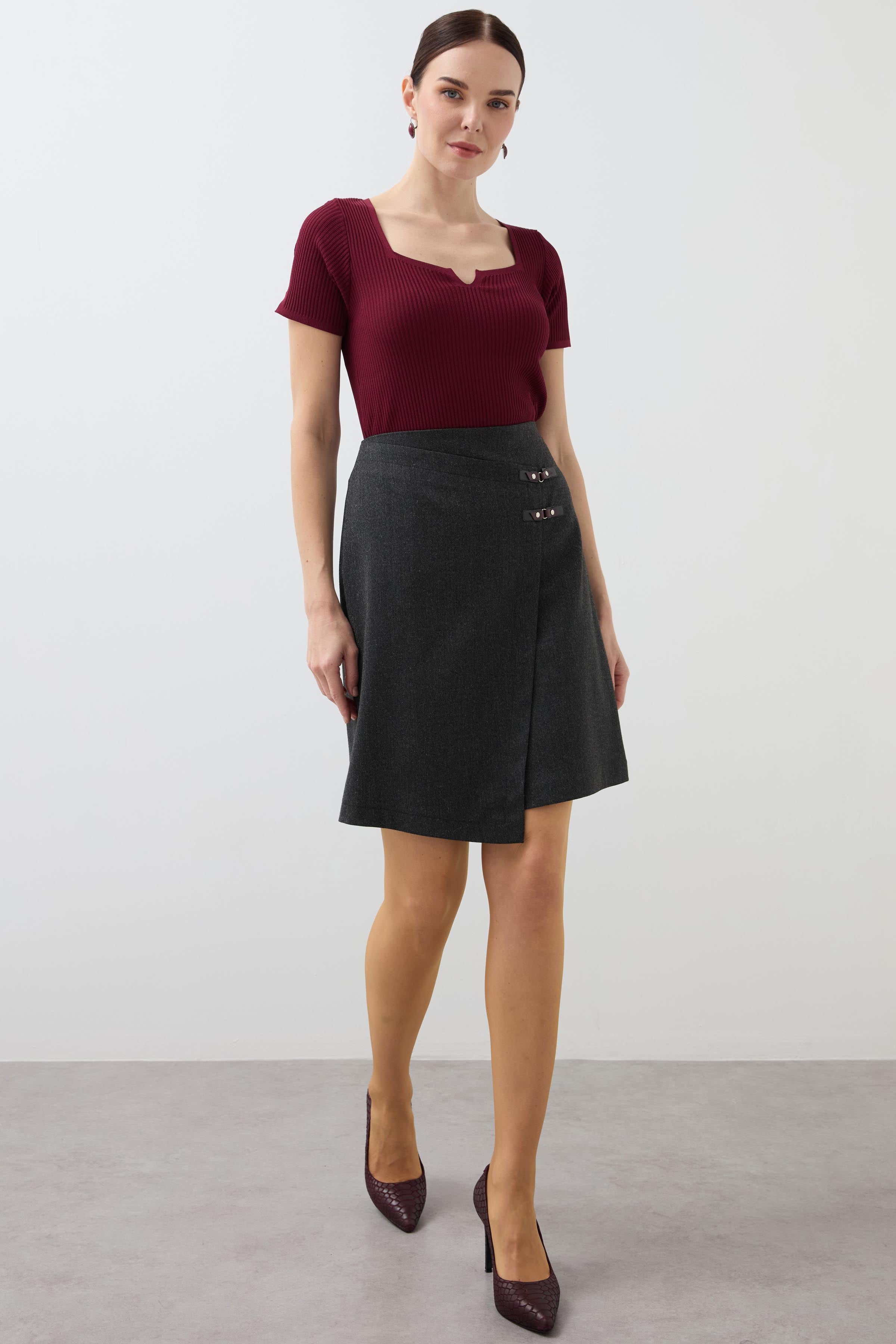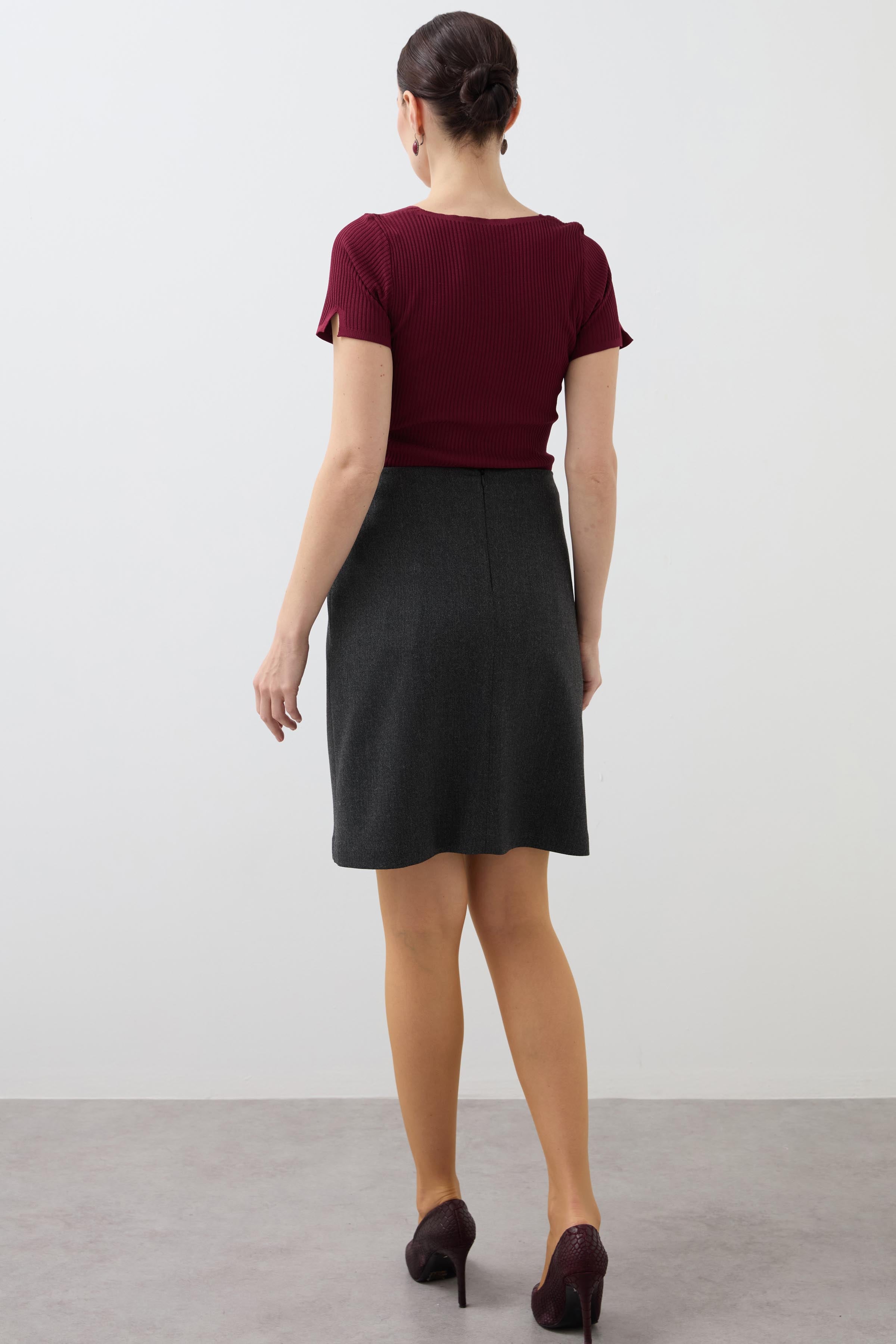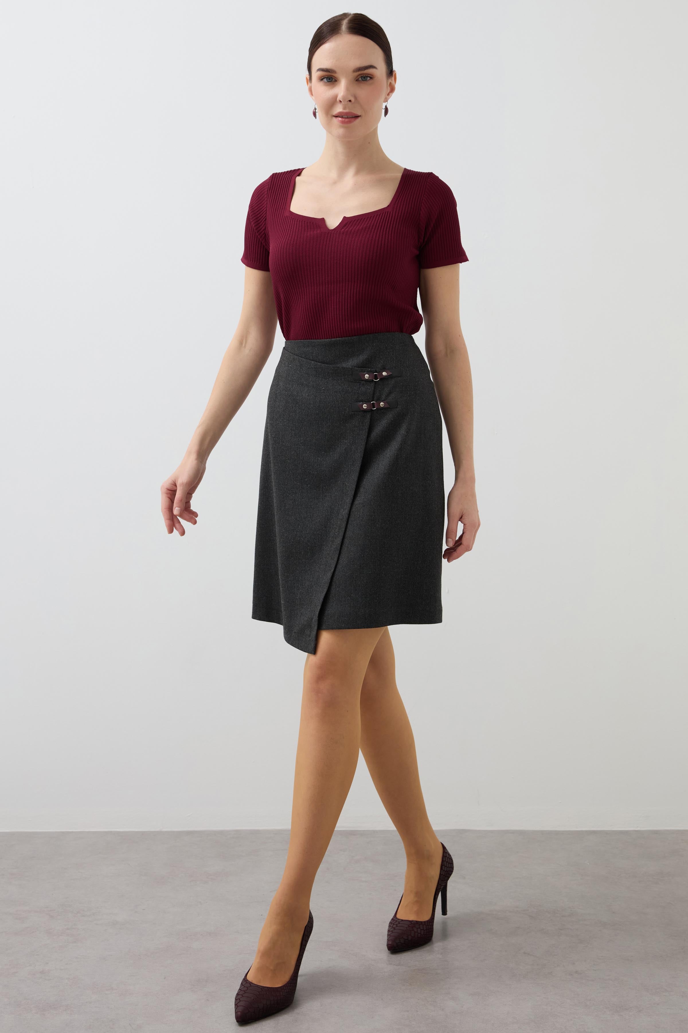 Double-Breasted Belt Detailed Skirt - Anthracite