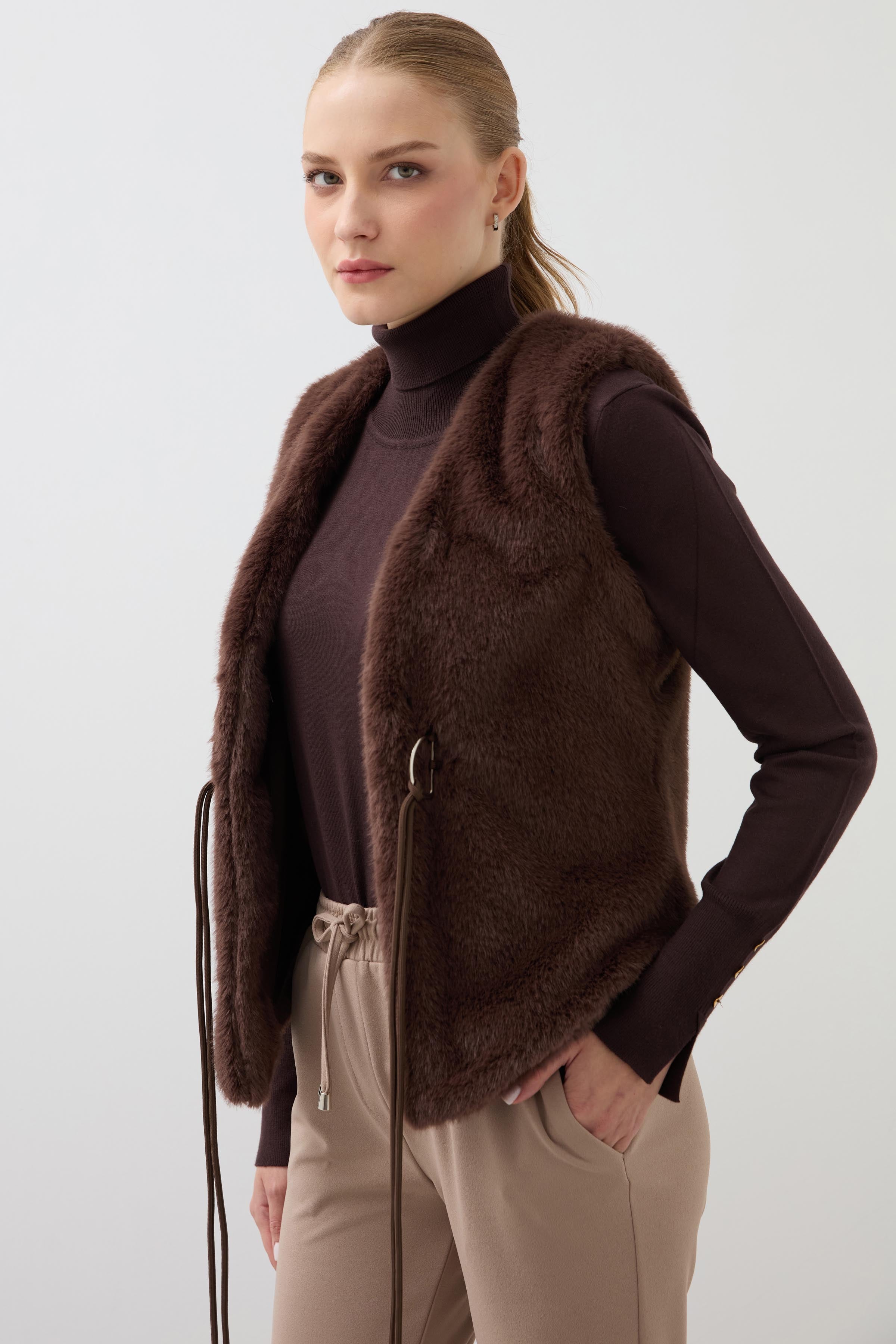 Short Fur Vest - Brown
