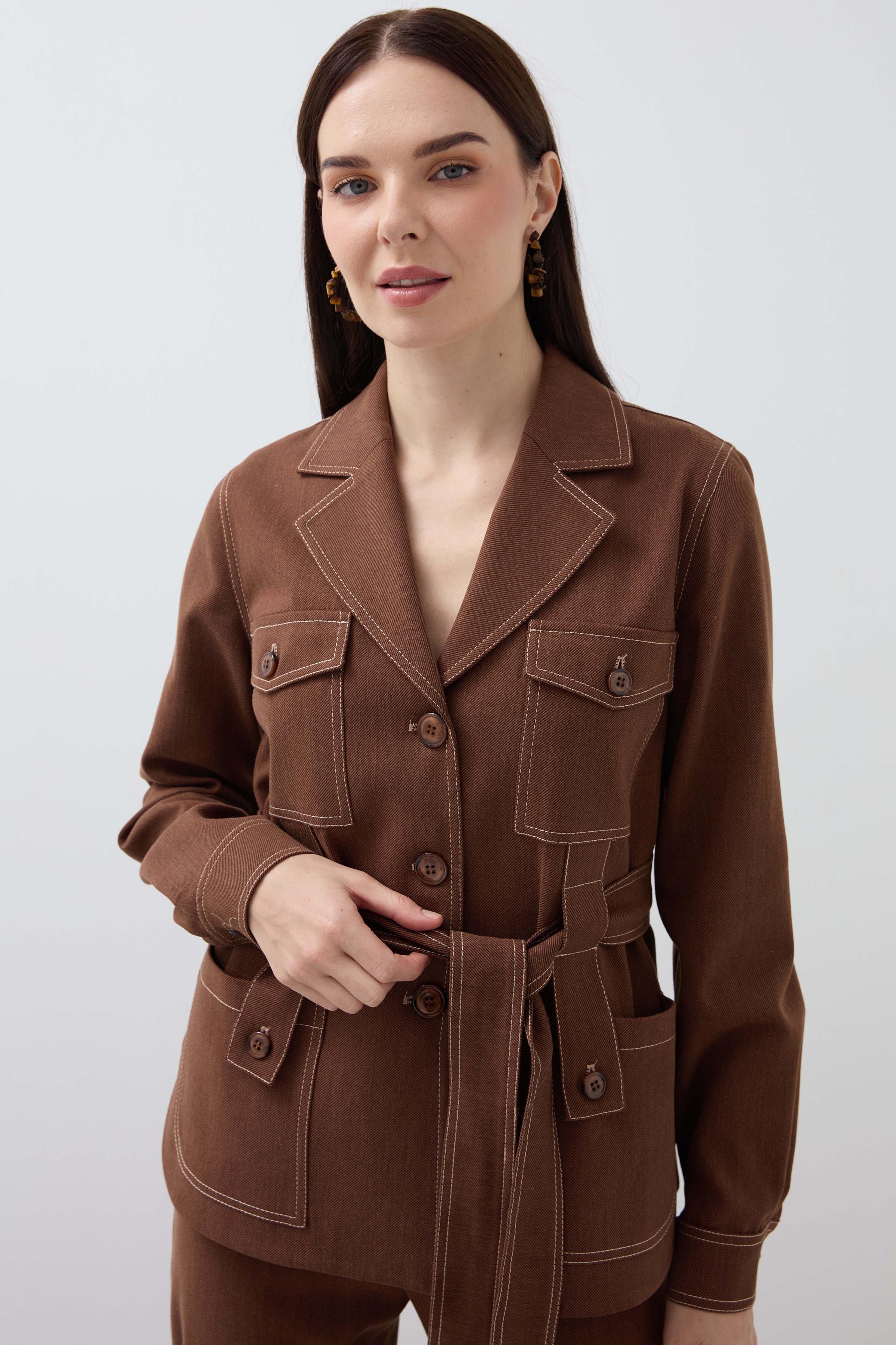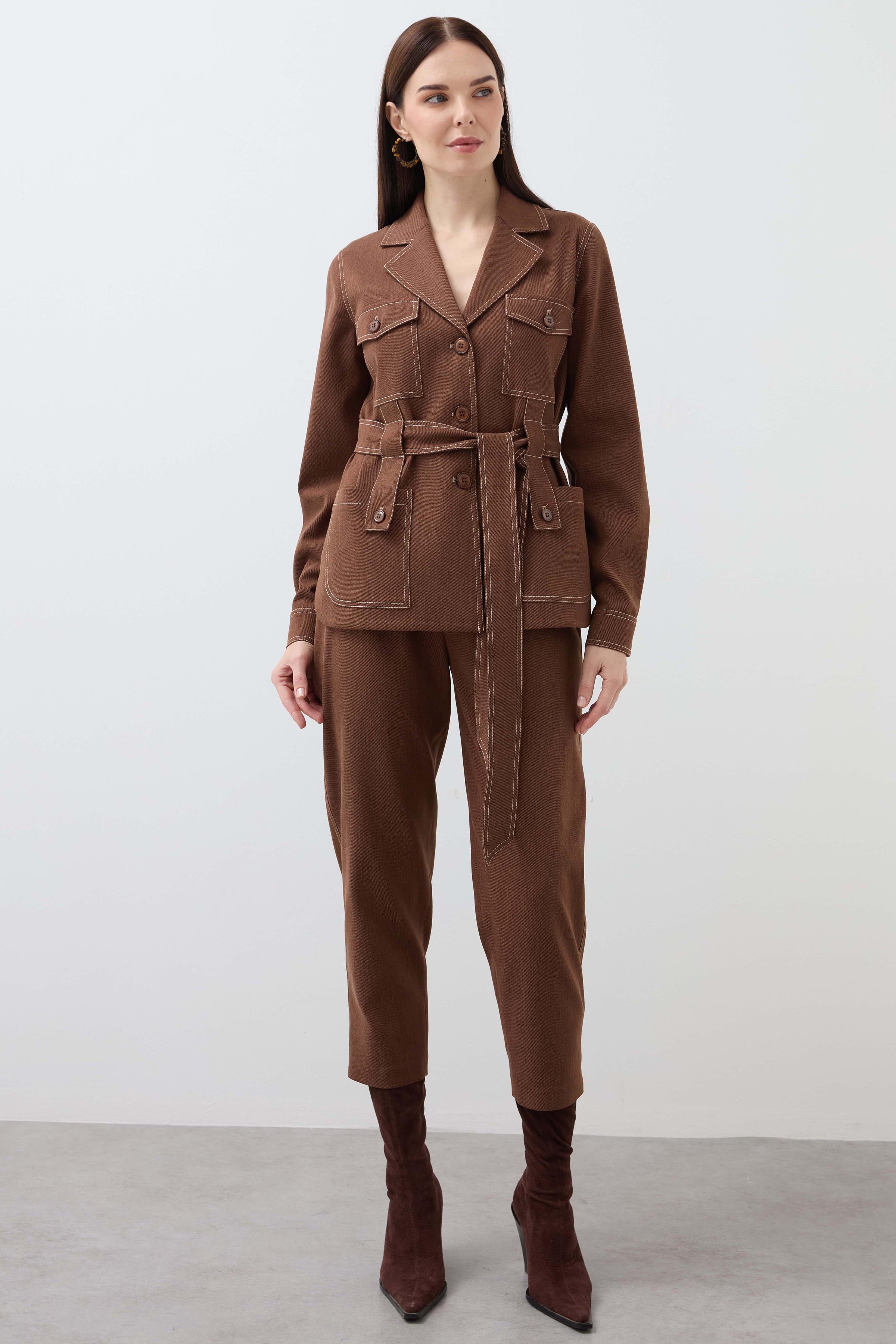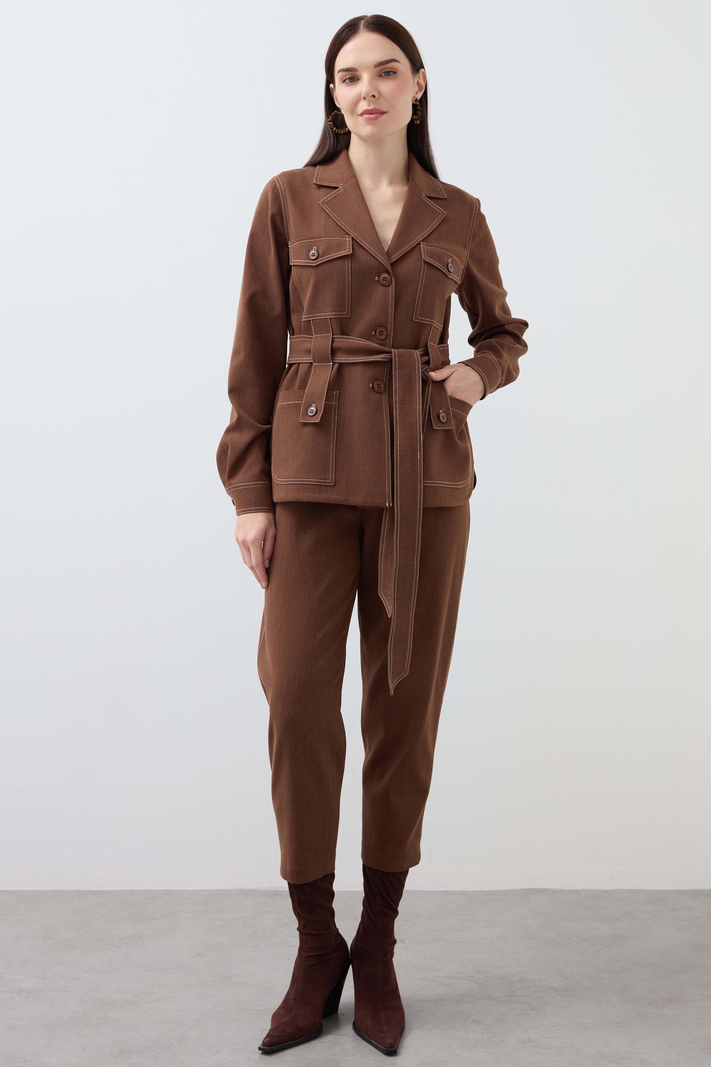 Mono Collar Pocket Detailed Jacket - Tan