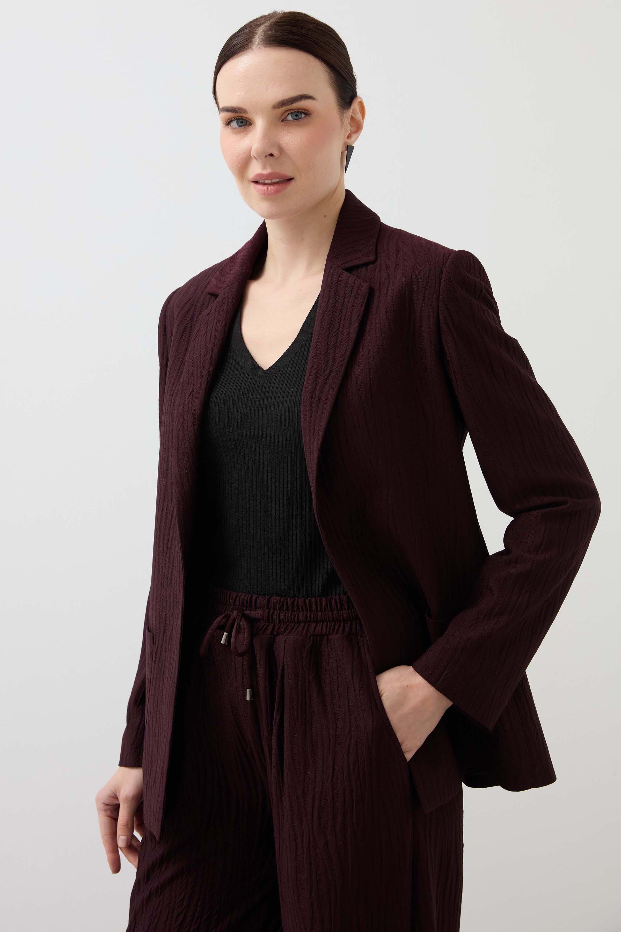Mono Collar Pocket Detailed Knitted Jacket - Claret Red