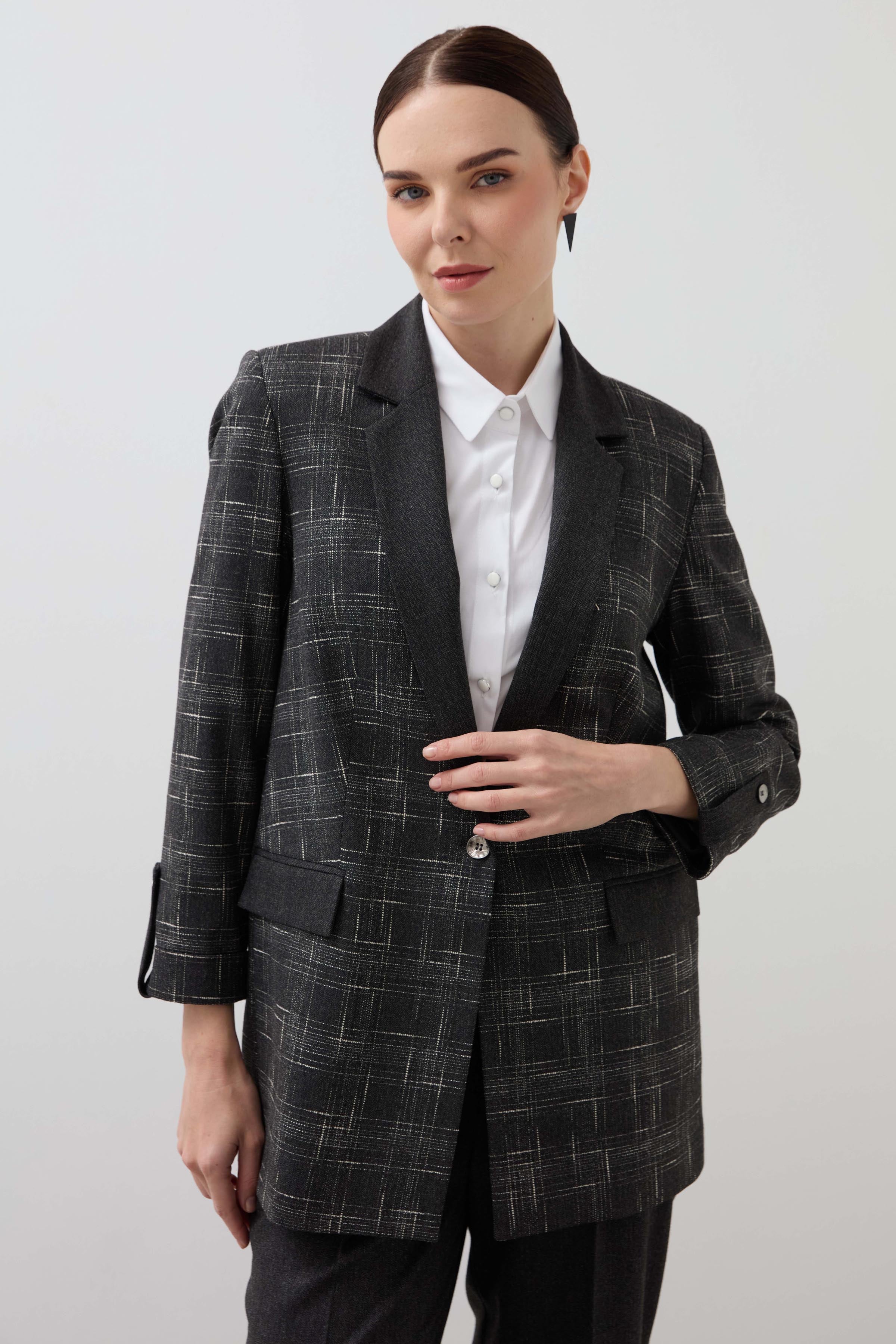 Mono Collar Three Quarter Sleeve Jacket - Anthracite