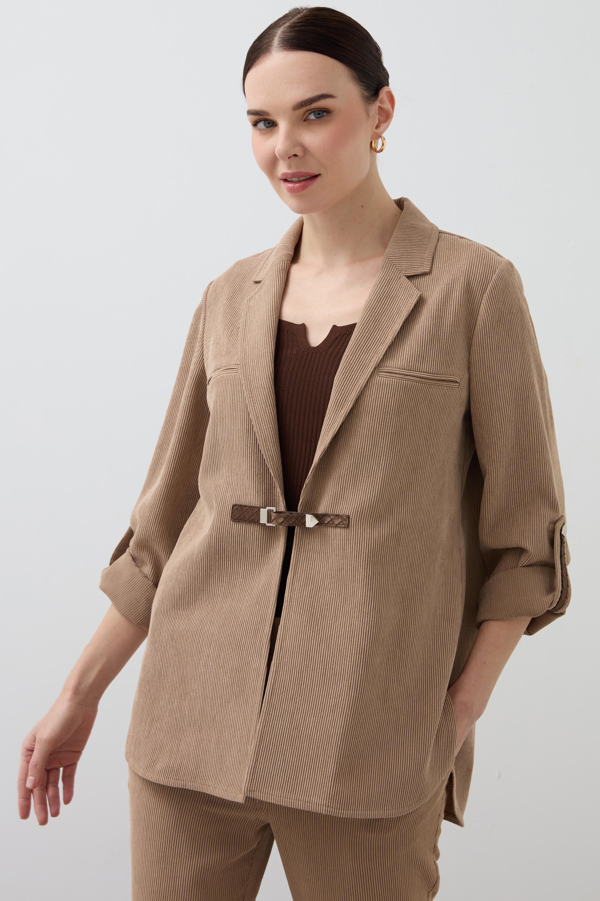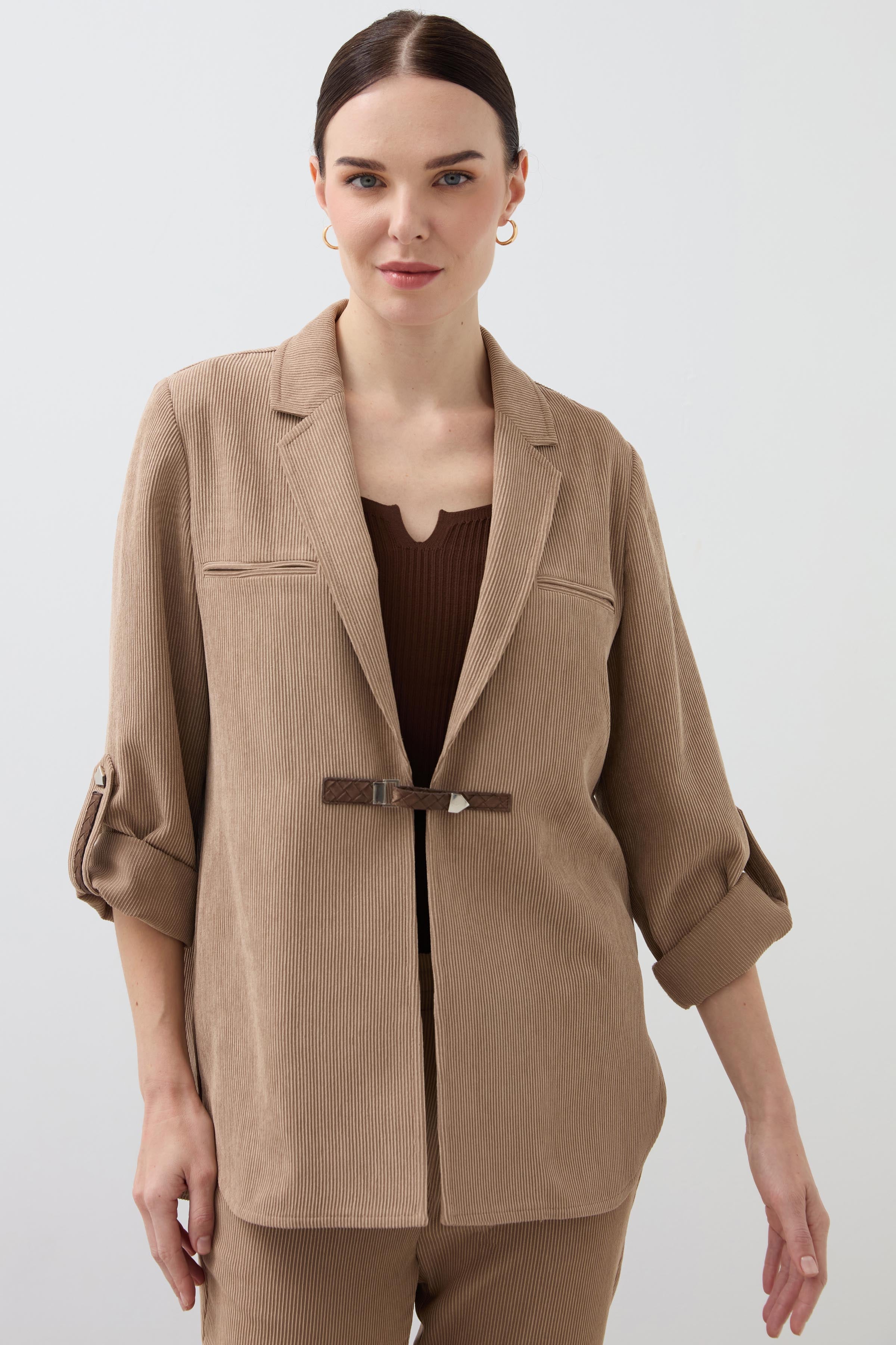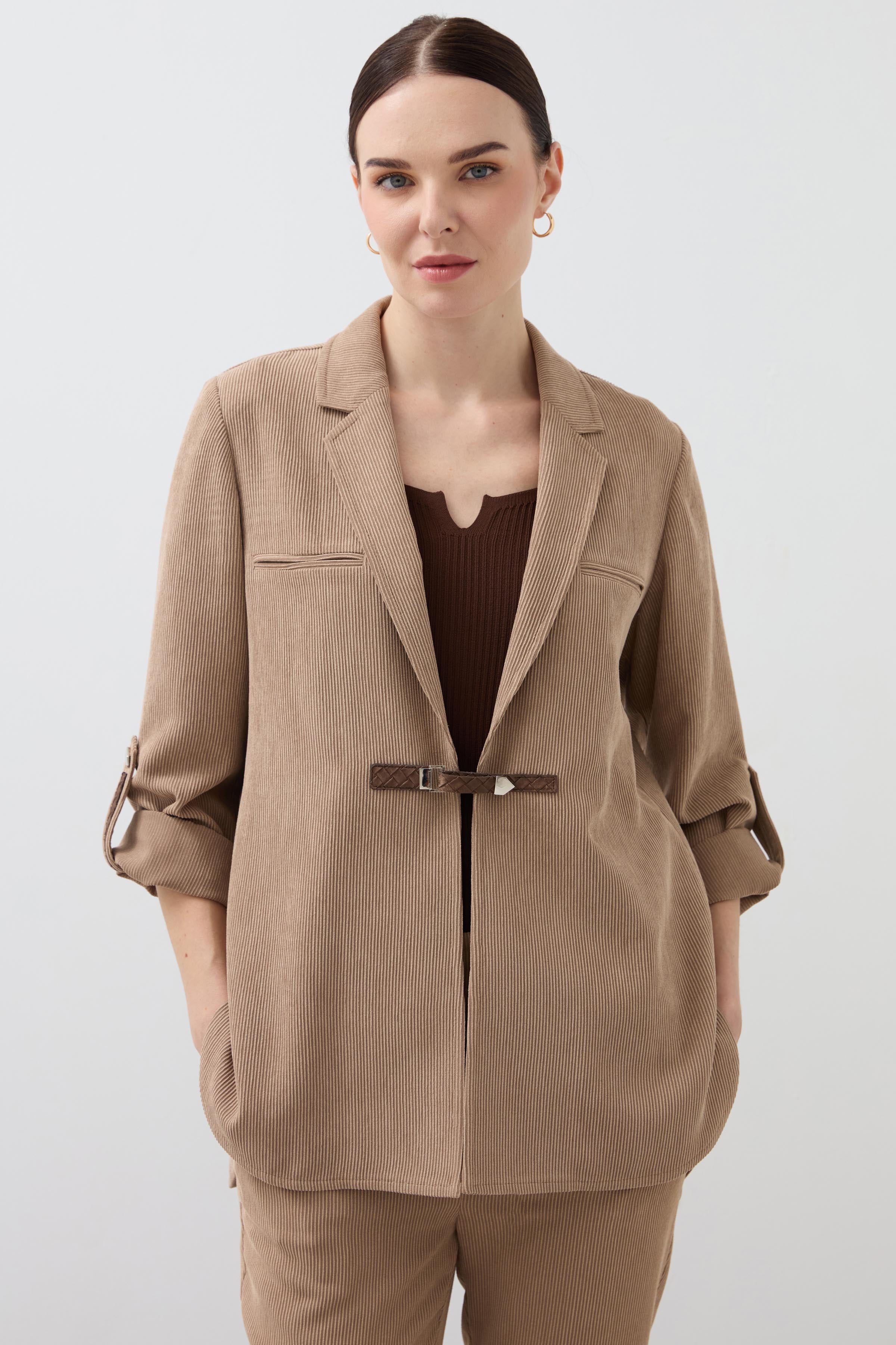 Mono Collar Velvet Shirt Jacket - Mink