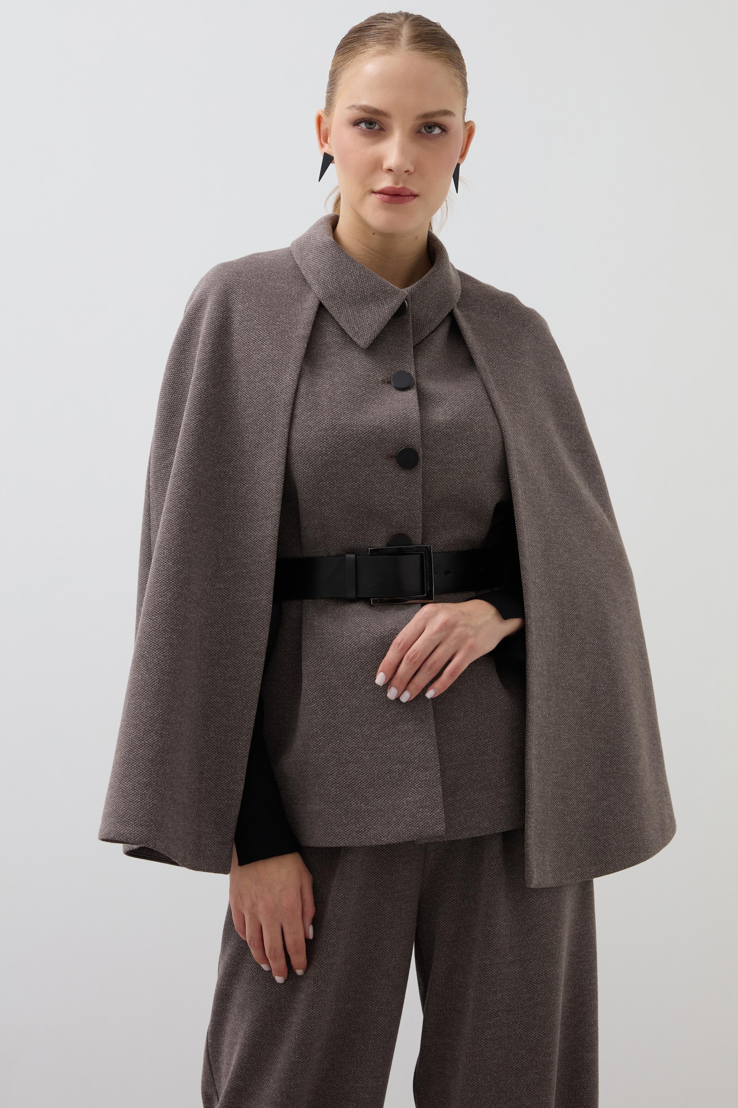 Cape and Vest 2-Piece Suit - Mink