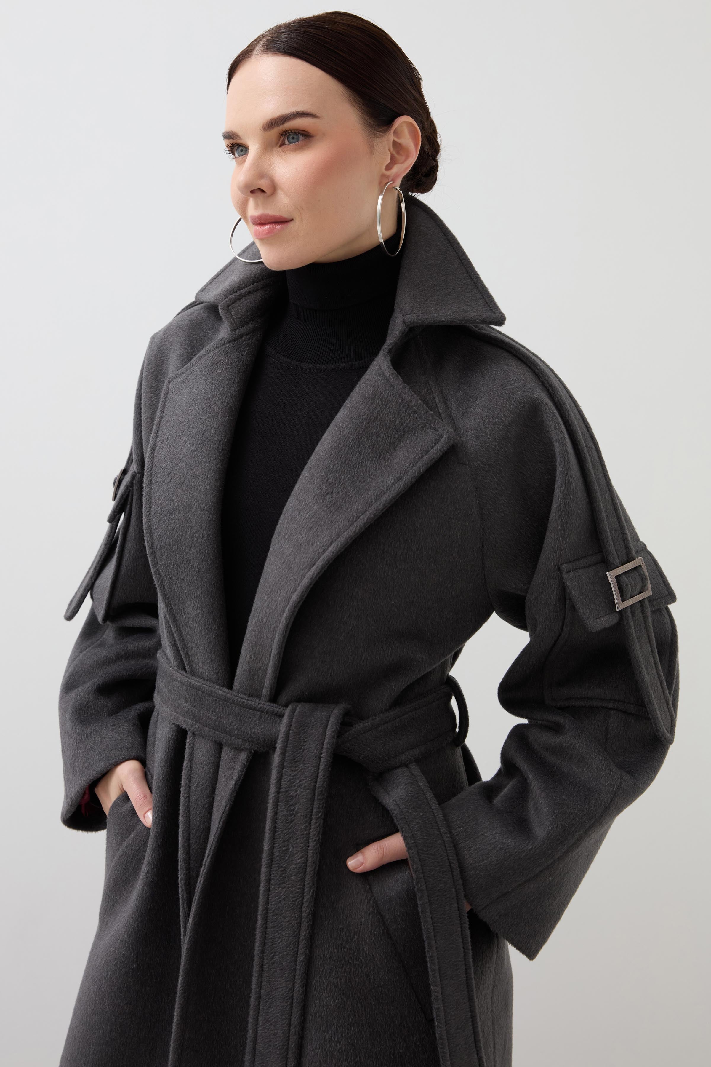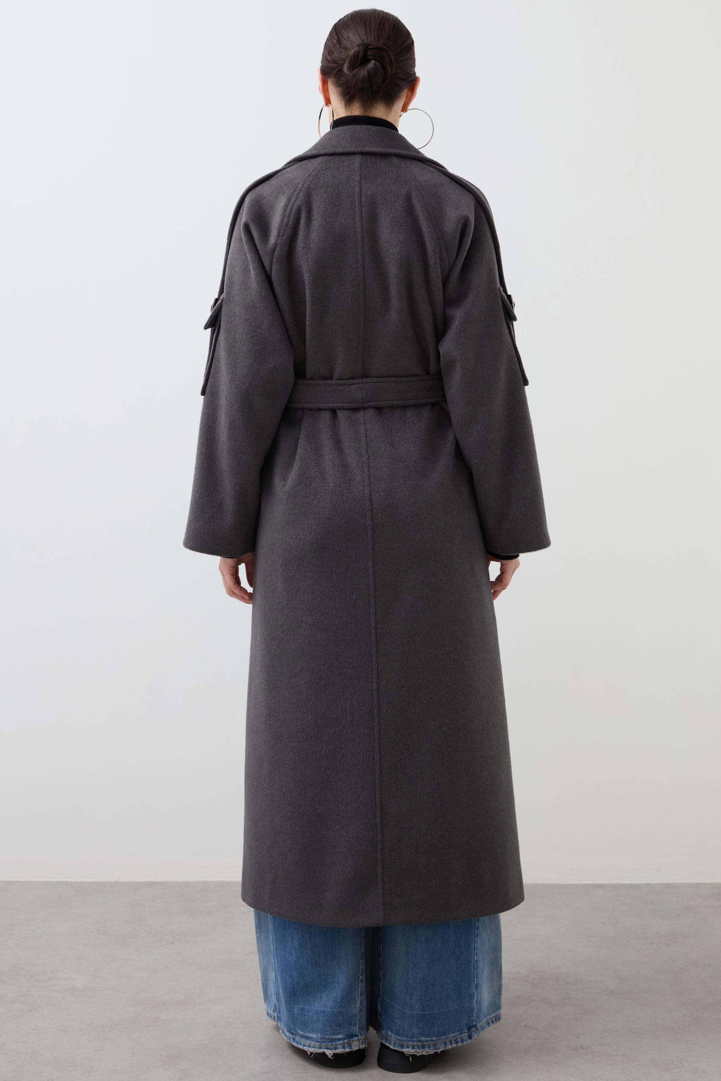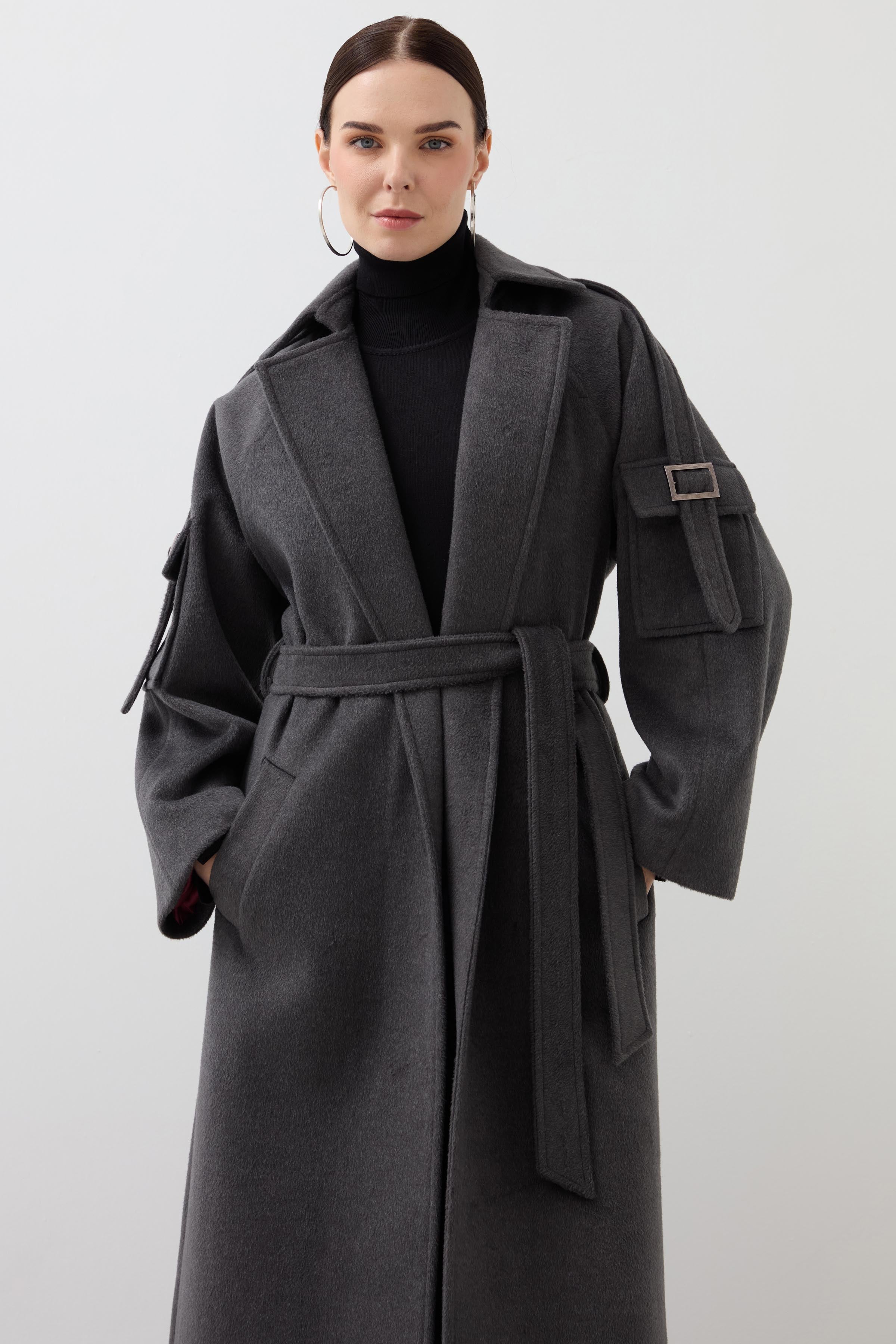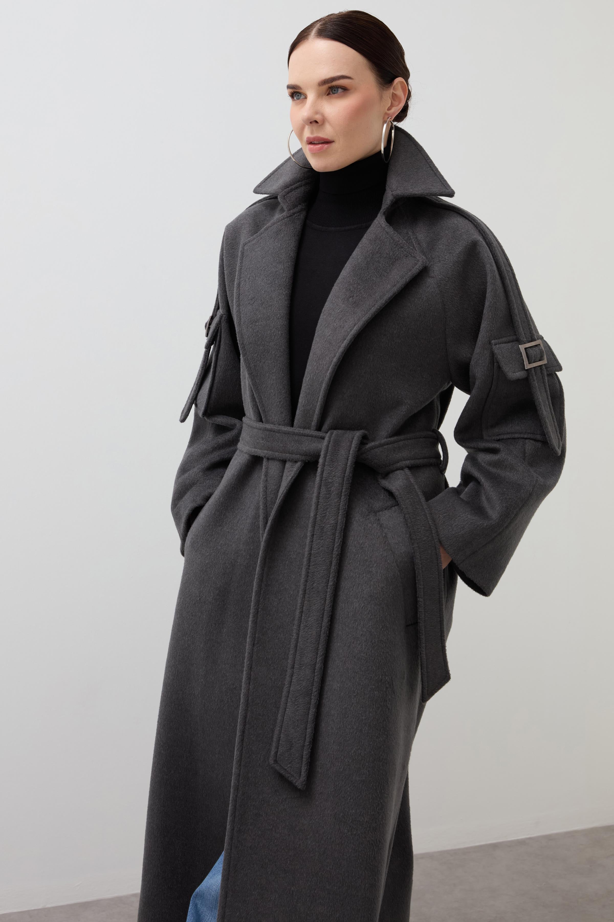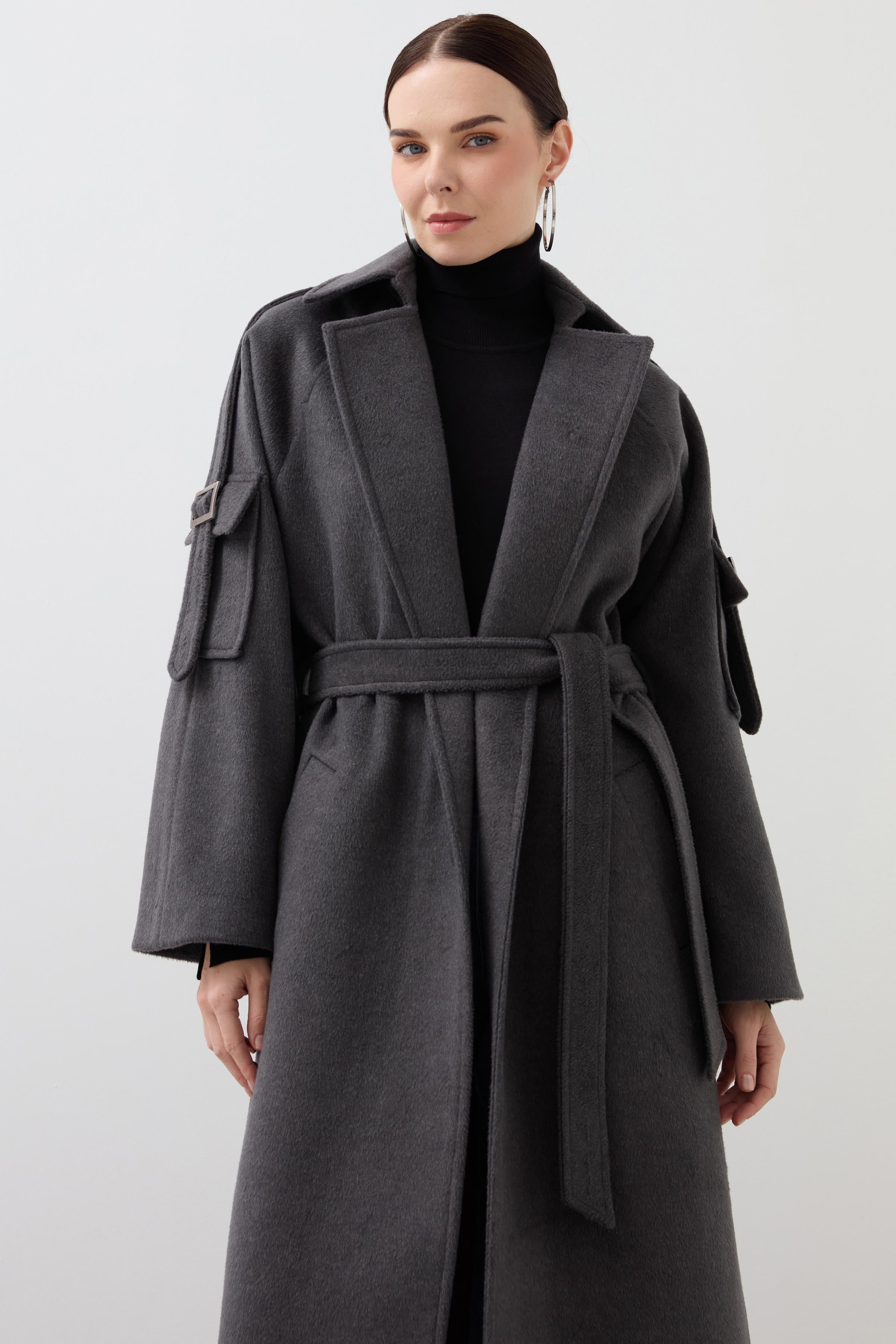 Raglan Sleeve Pocket Detailed Maxi Coat - Anthracite
