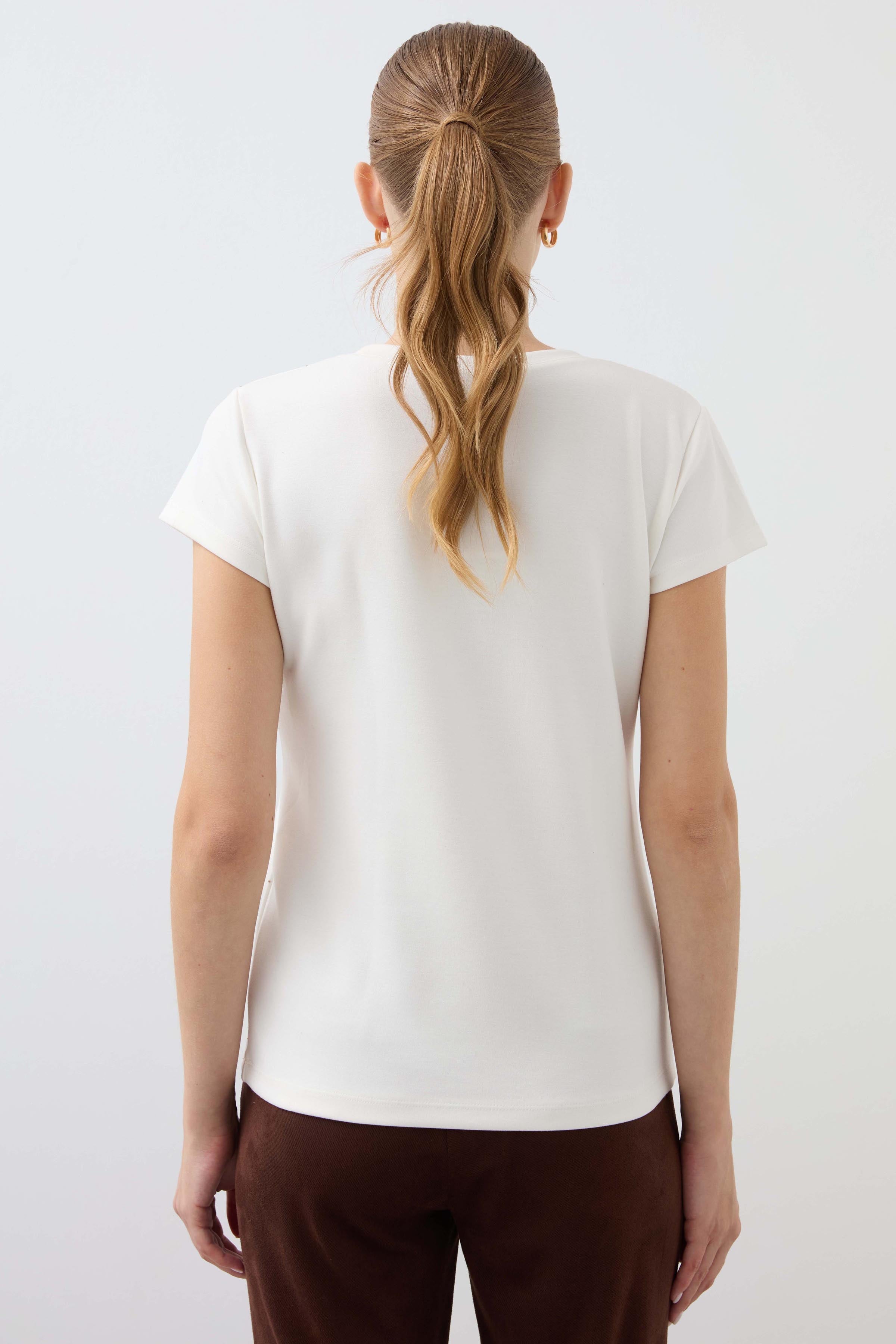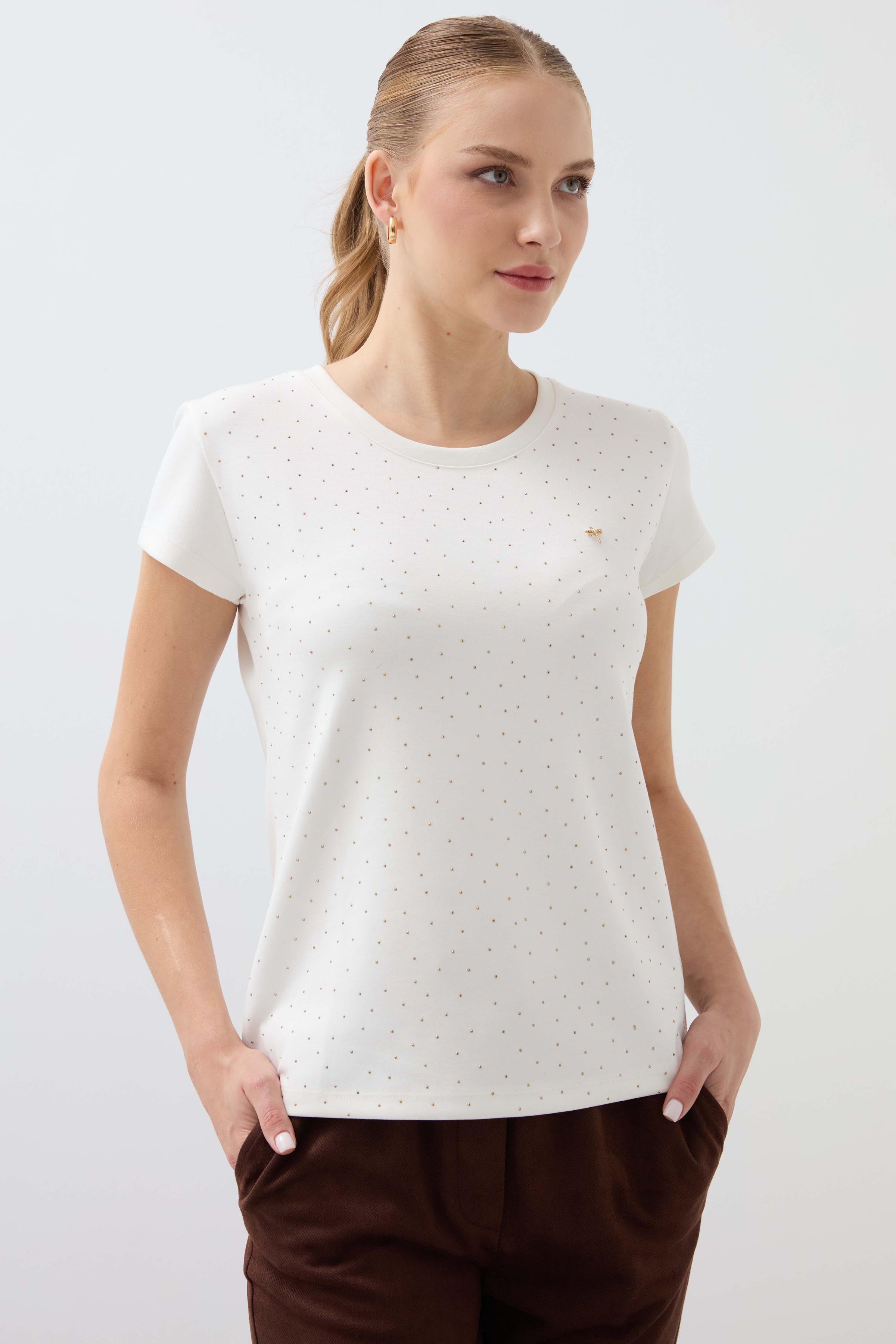 Crew Neck Moon Sleeve Stoned Blouse - Ecru