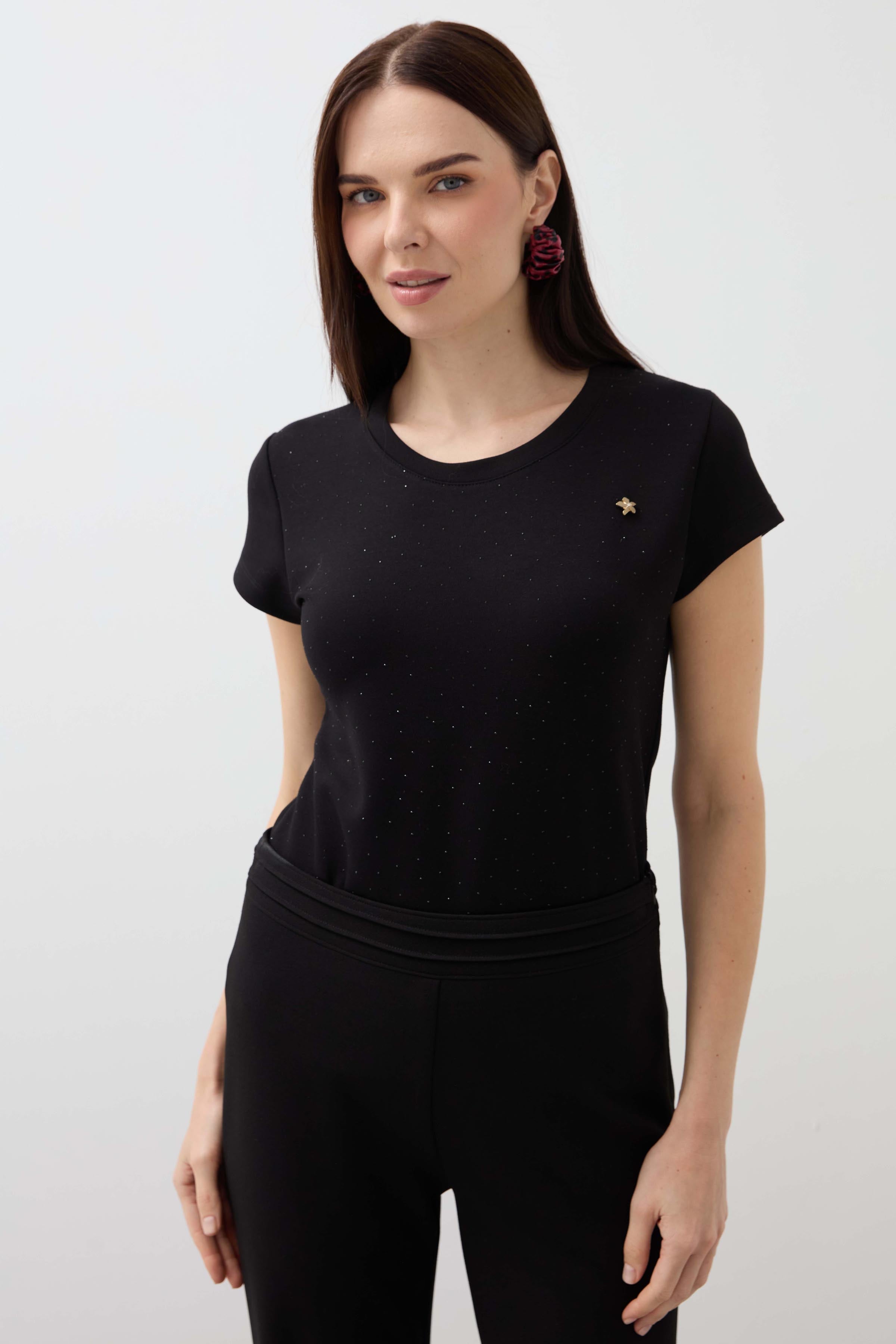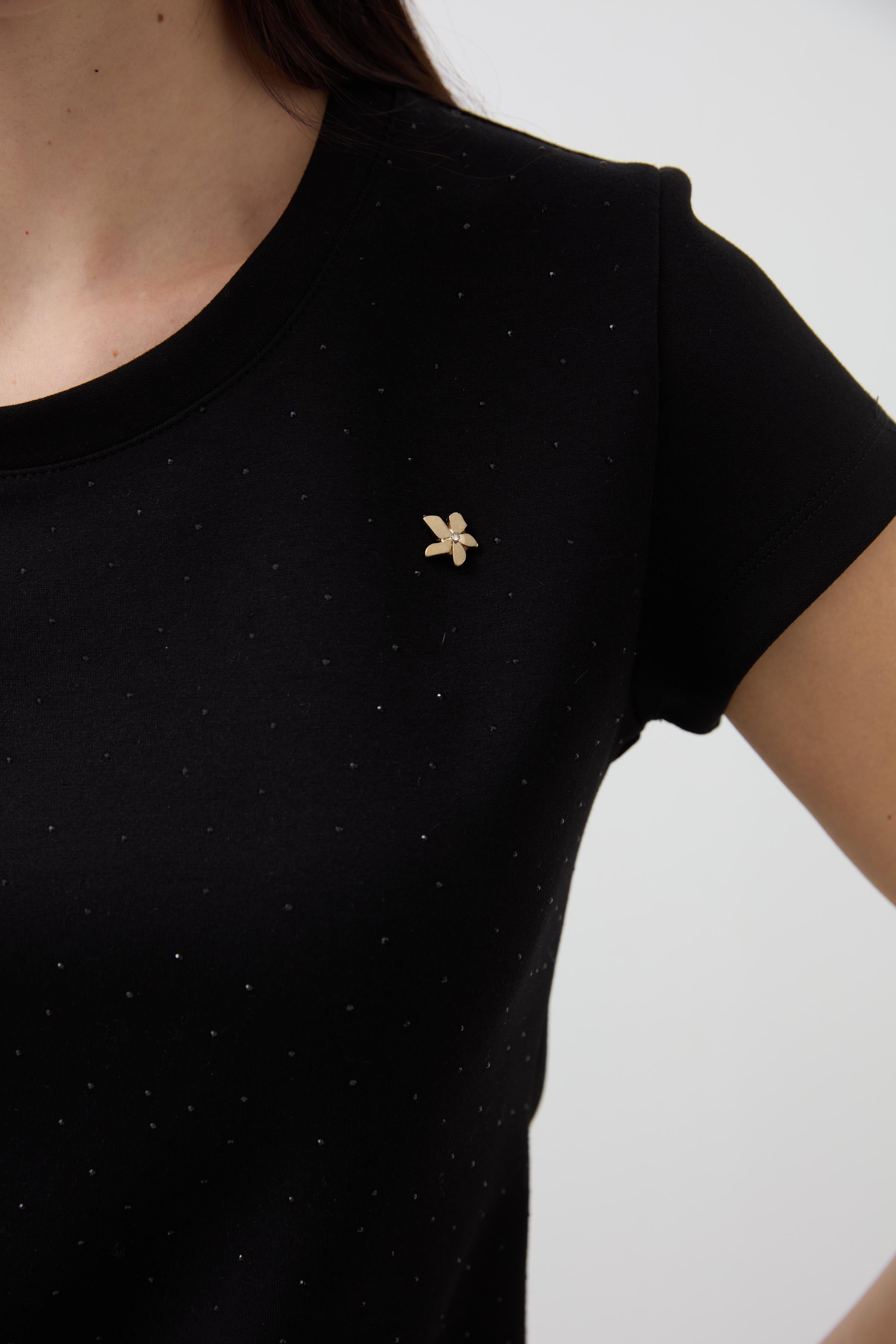 Zero Collar Moon Sleeve Stoned Blouse - Black