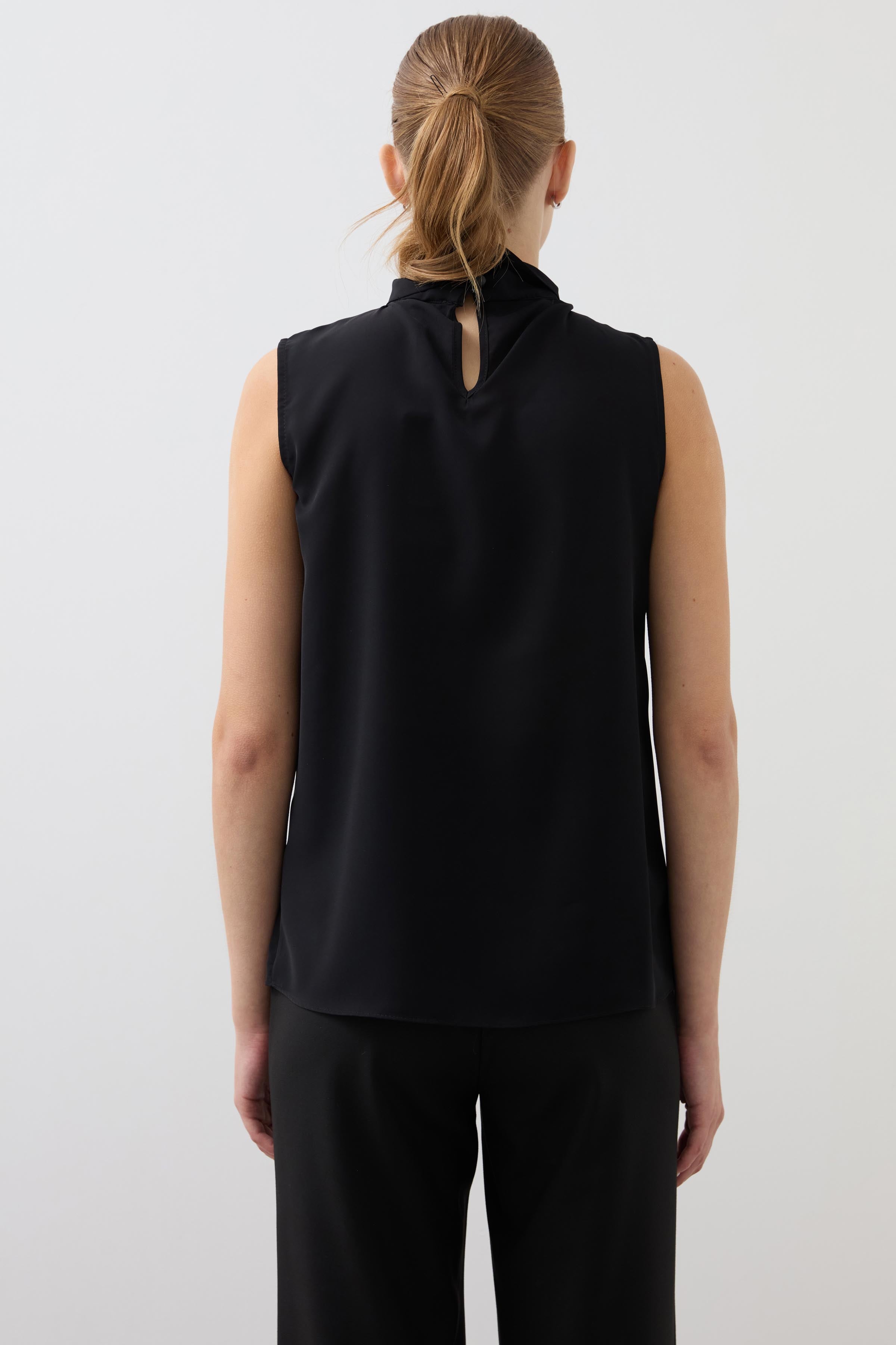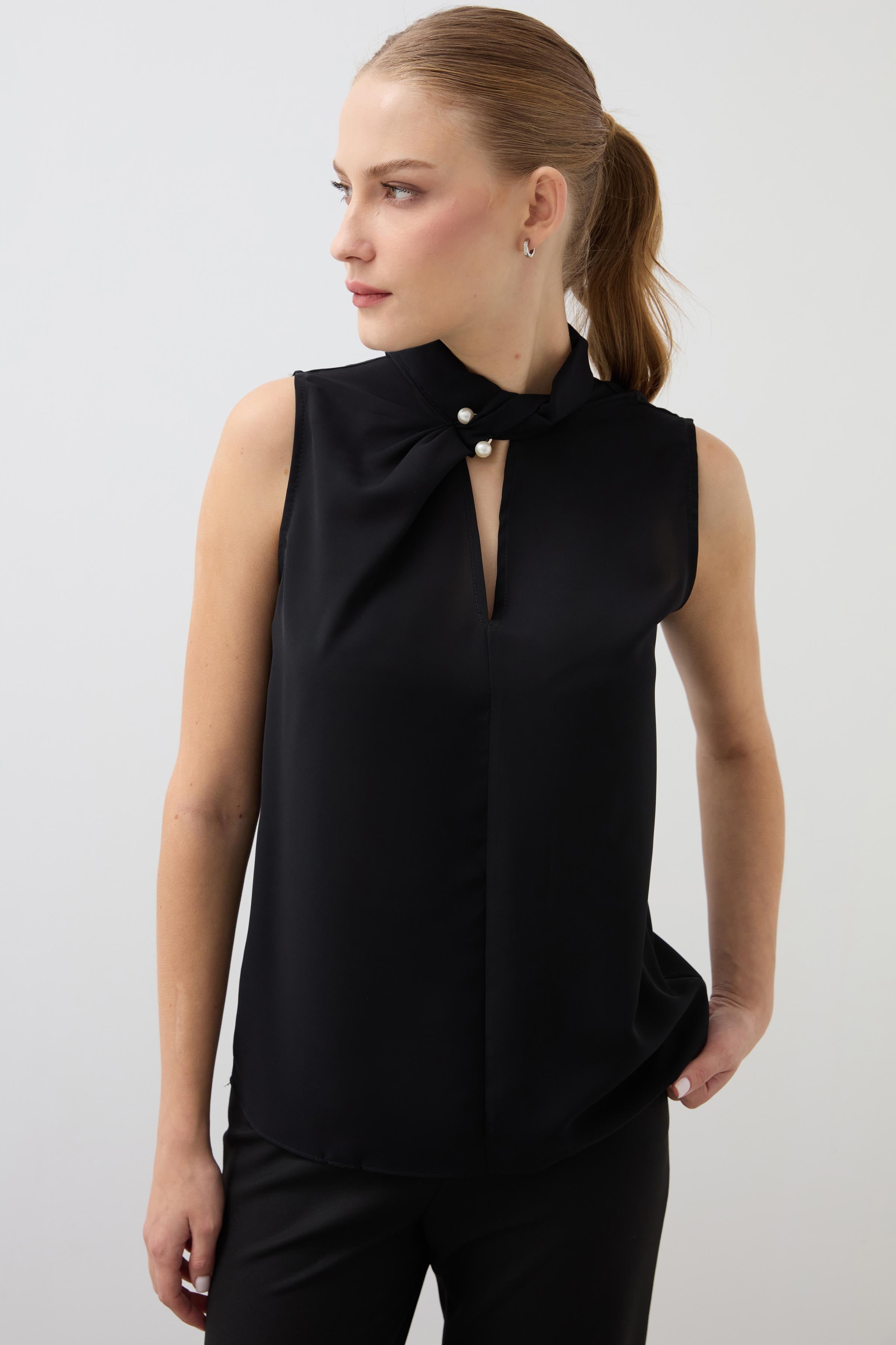 Chiffon Sleeveless Collar Detailed Blouse - Black