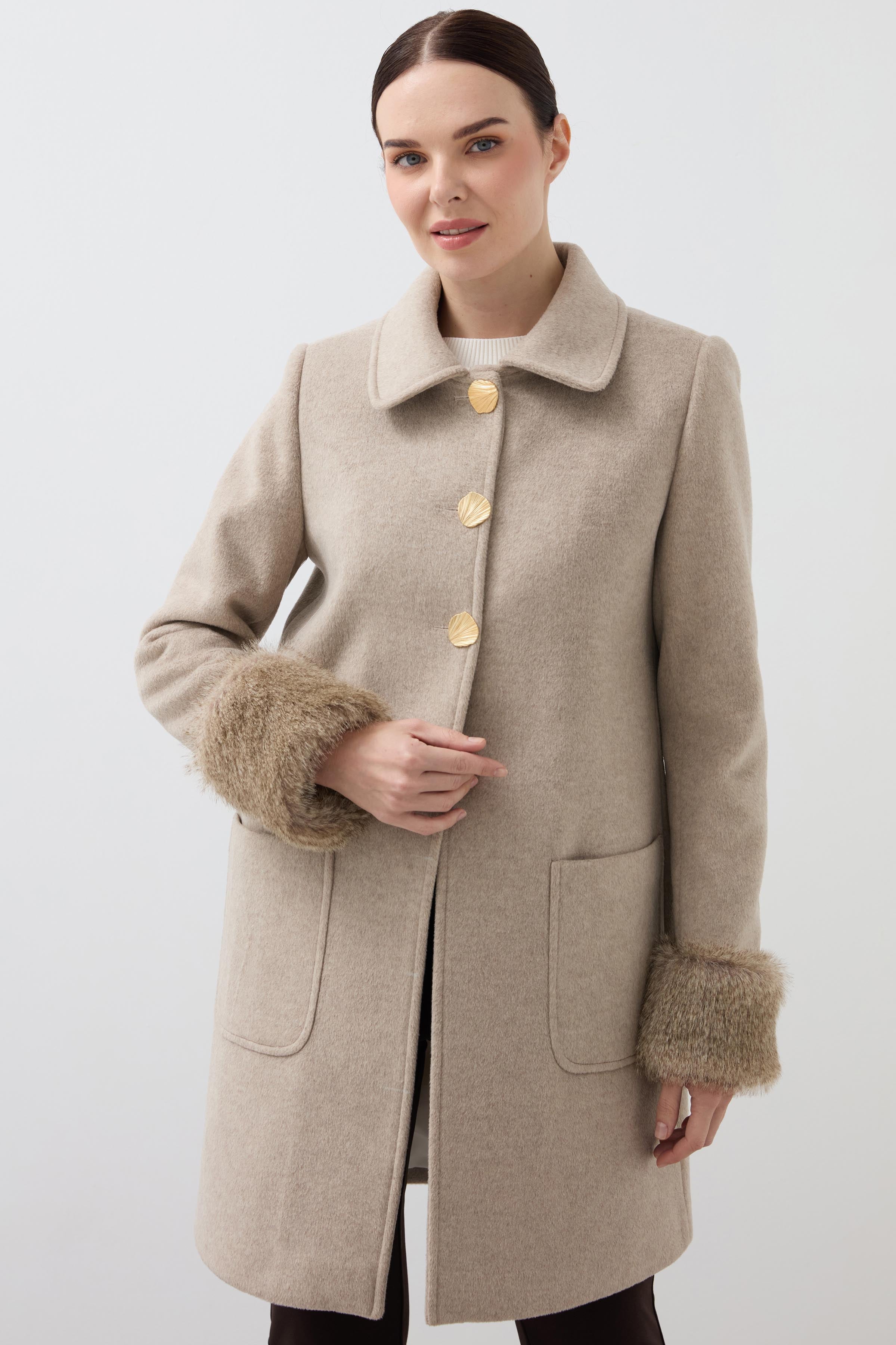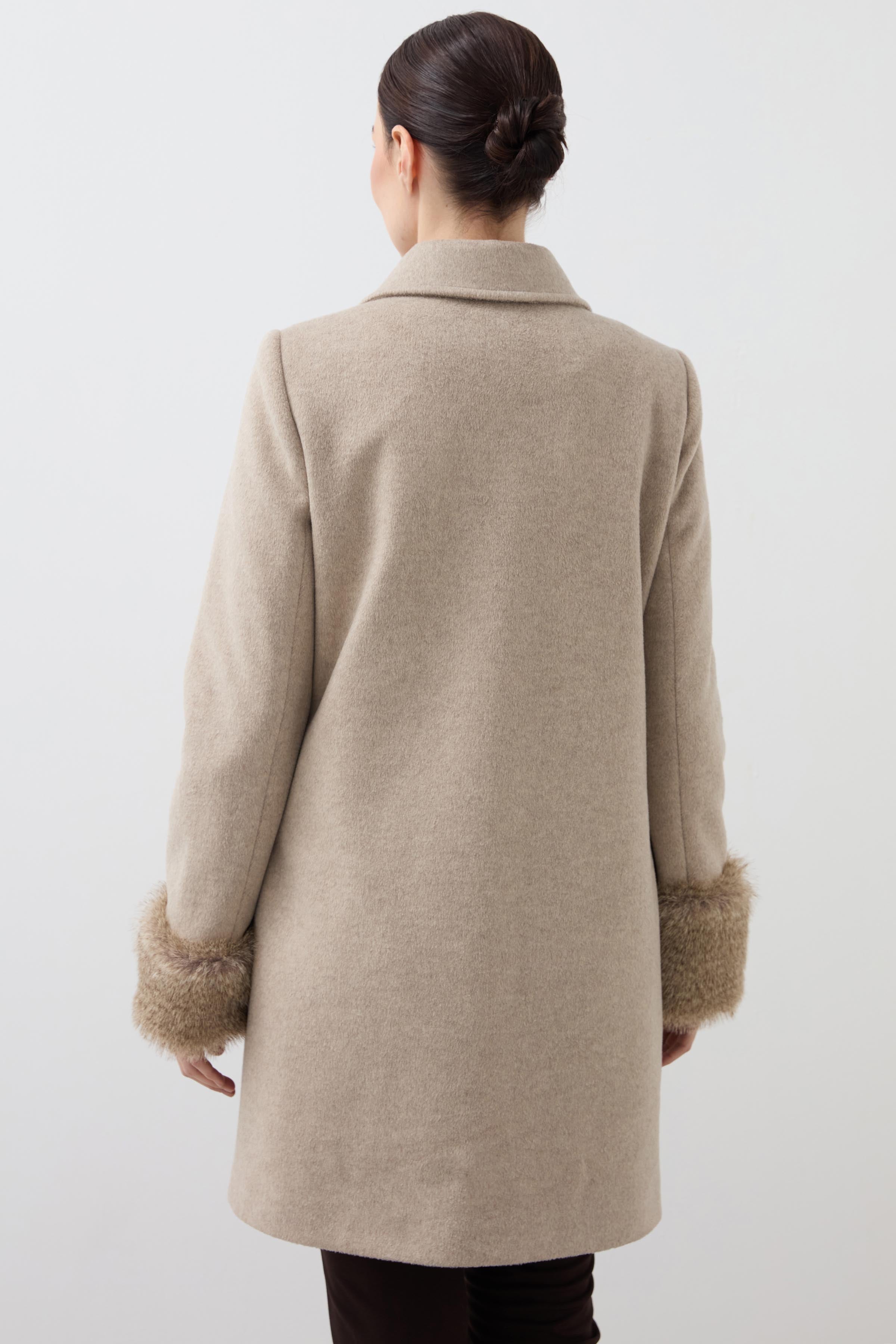 Fur Collar Sleeve Pocket Cashmere Coat - Beige
