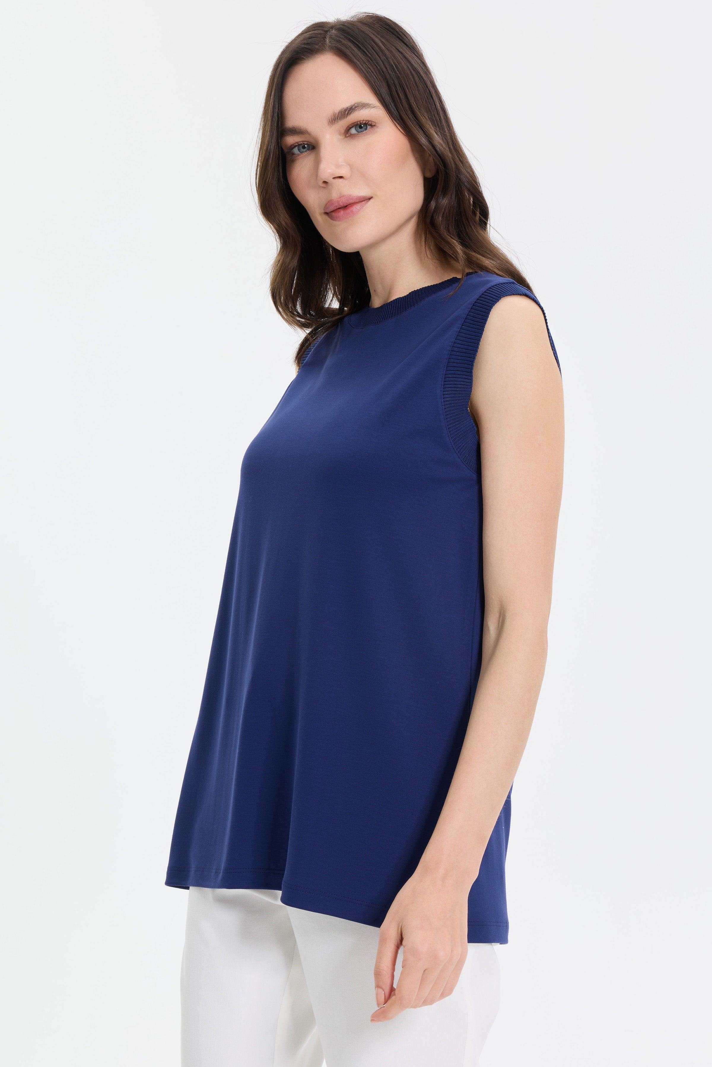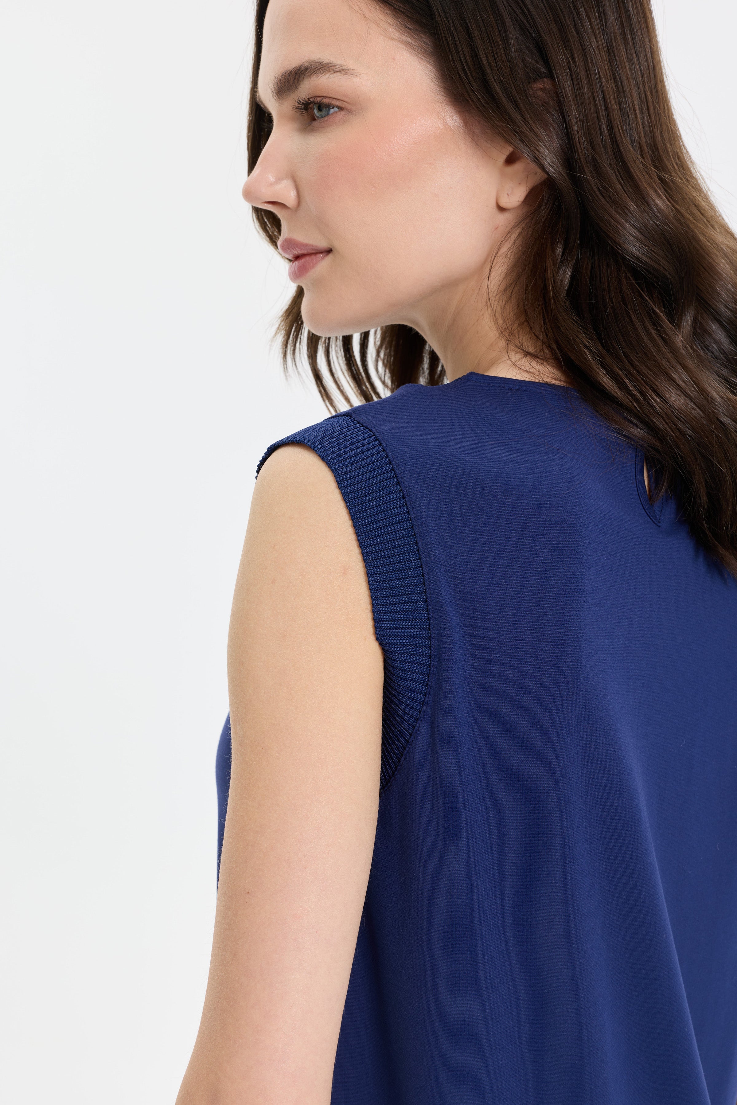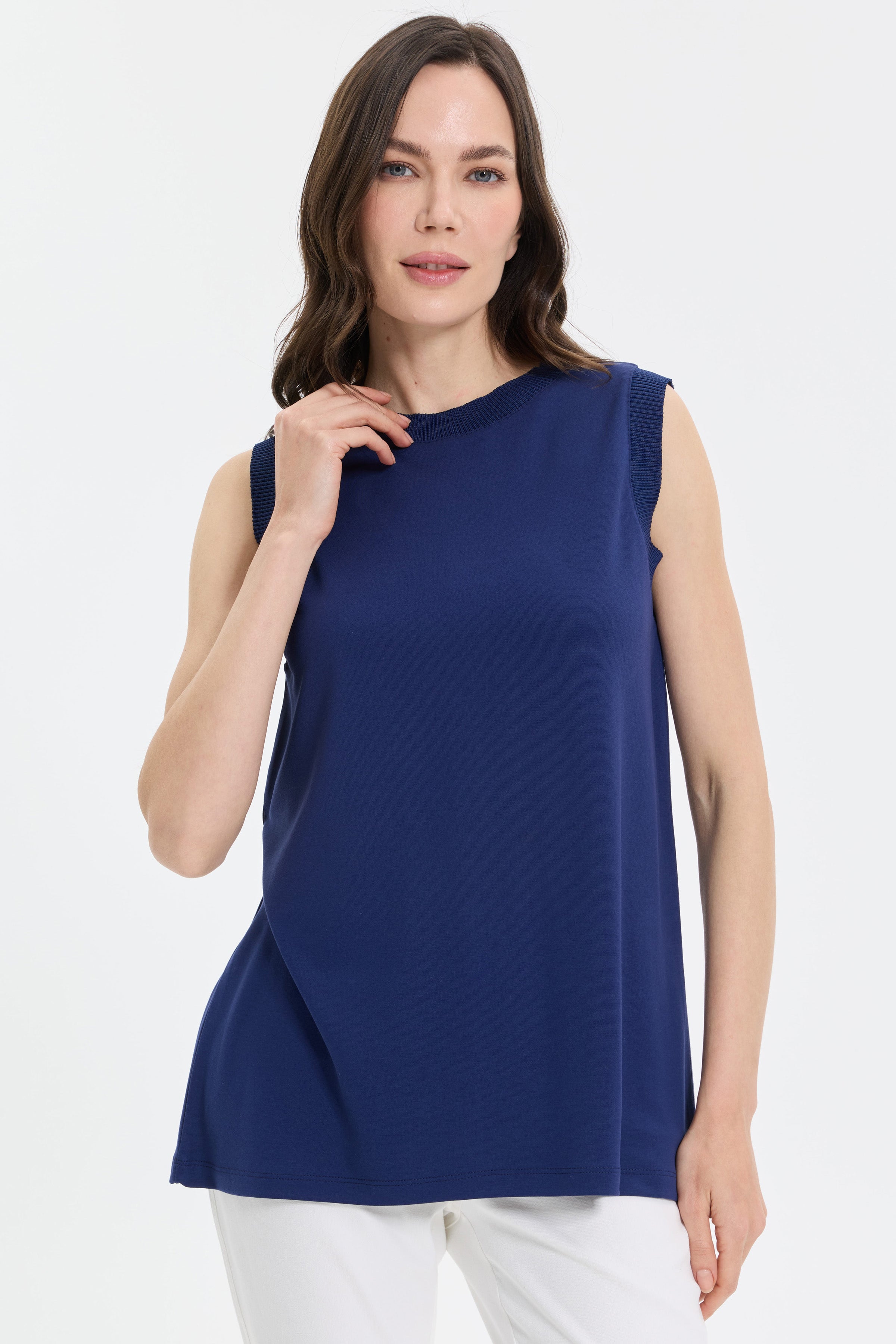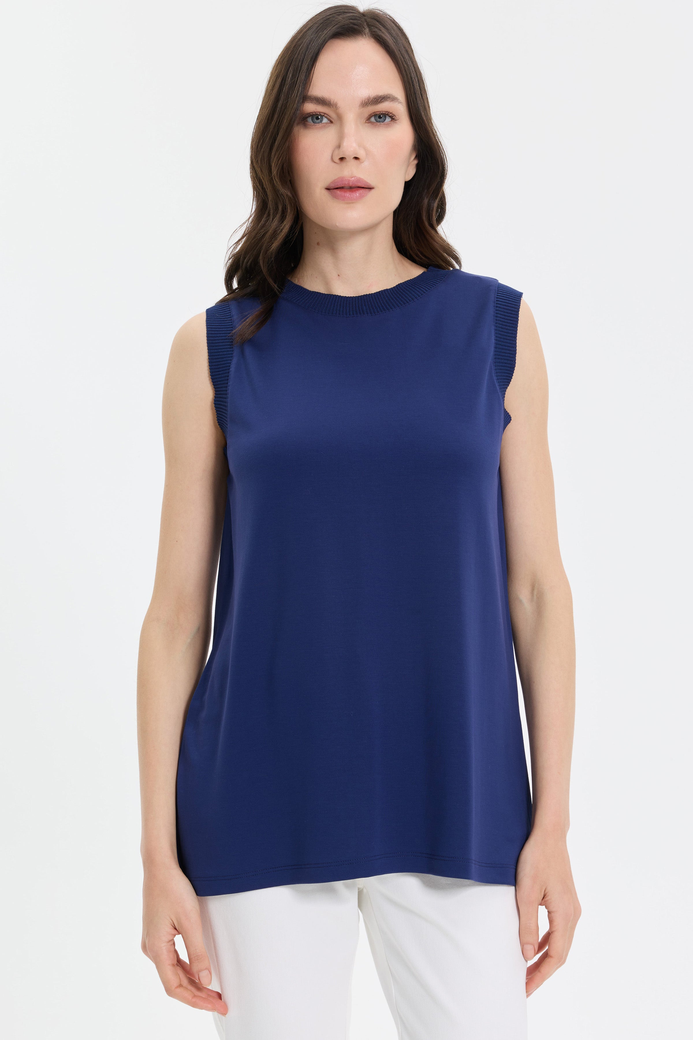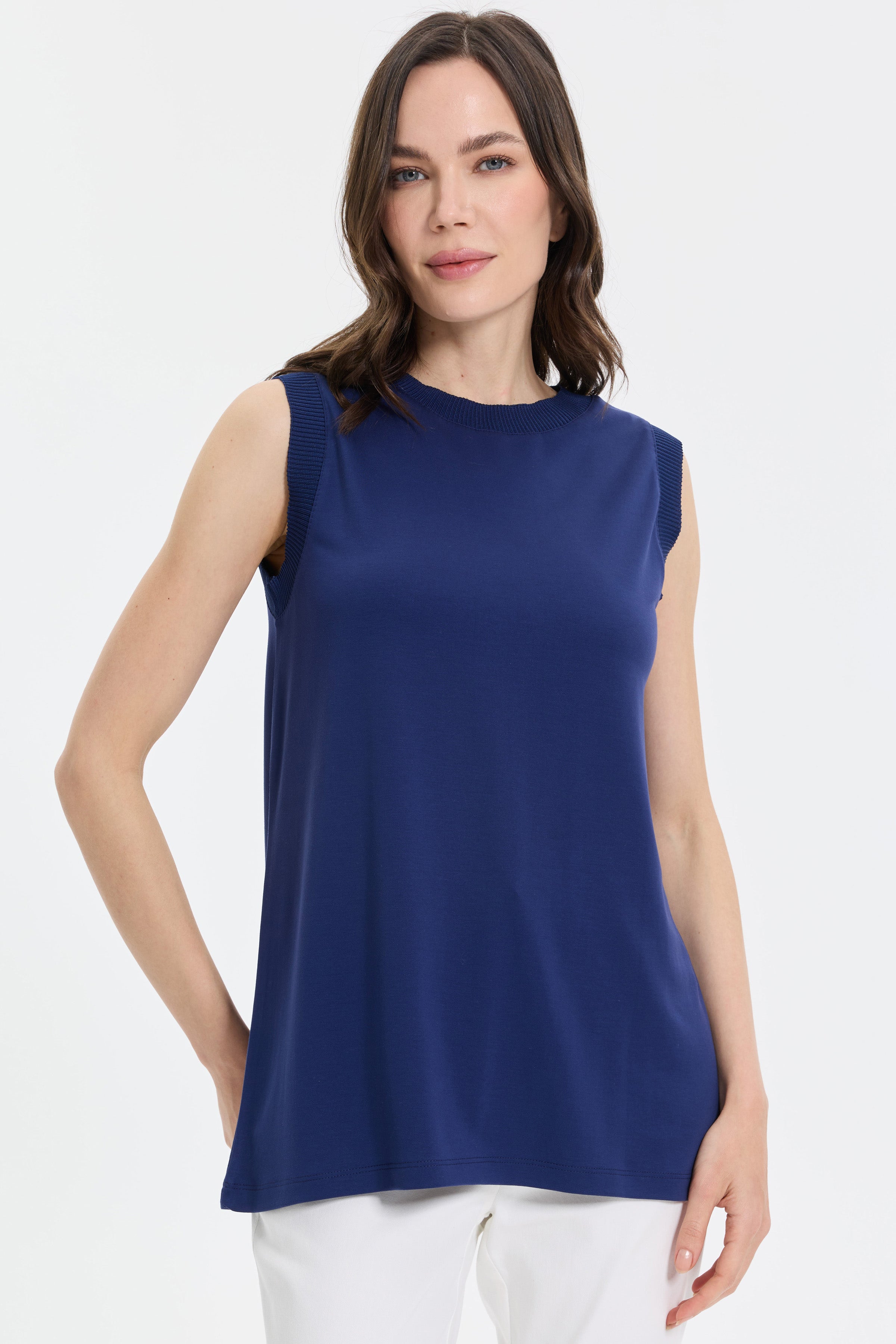 Yaka Kol Ribanalı Penye Uzun Atlet - İndigo