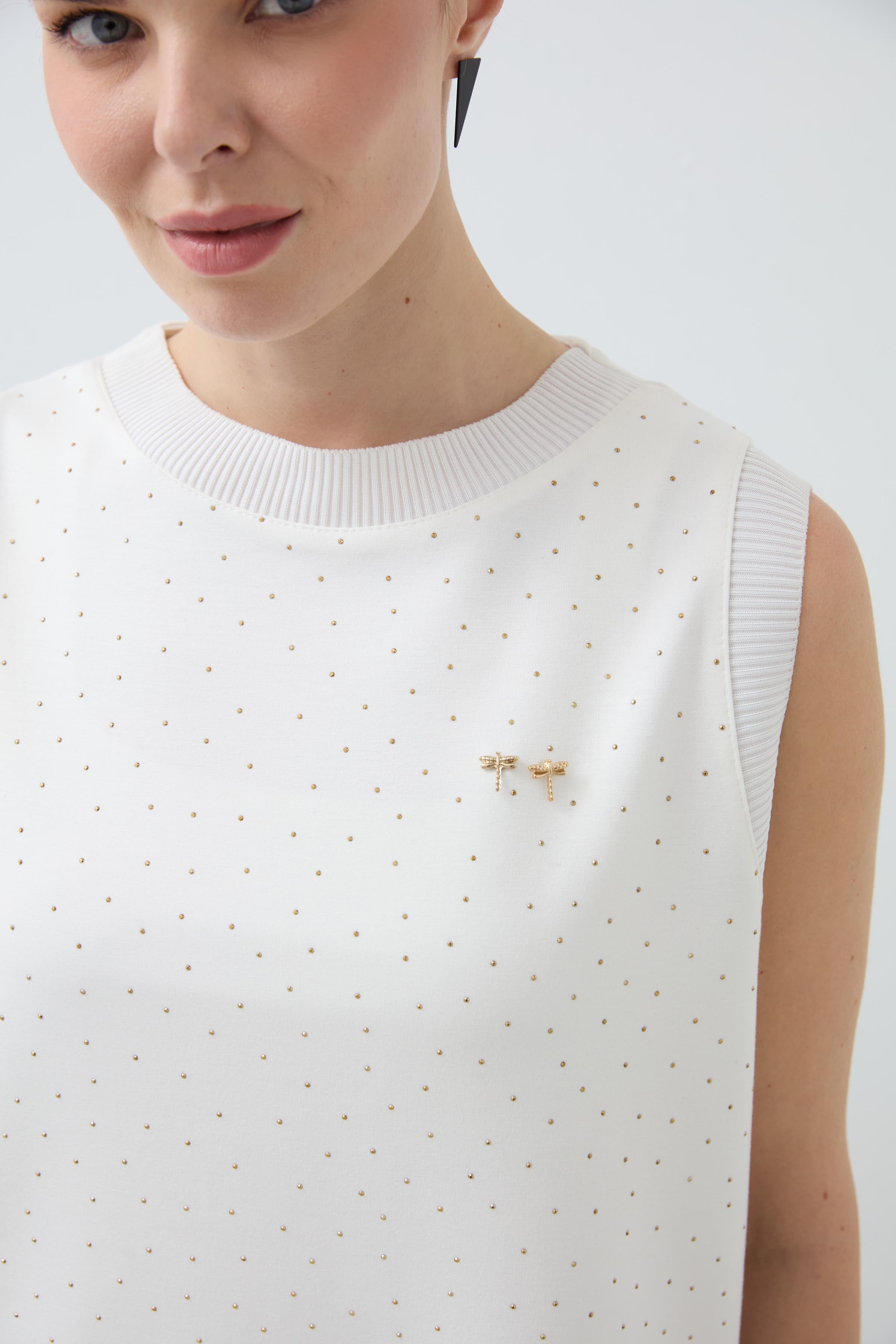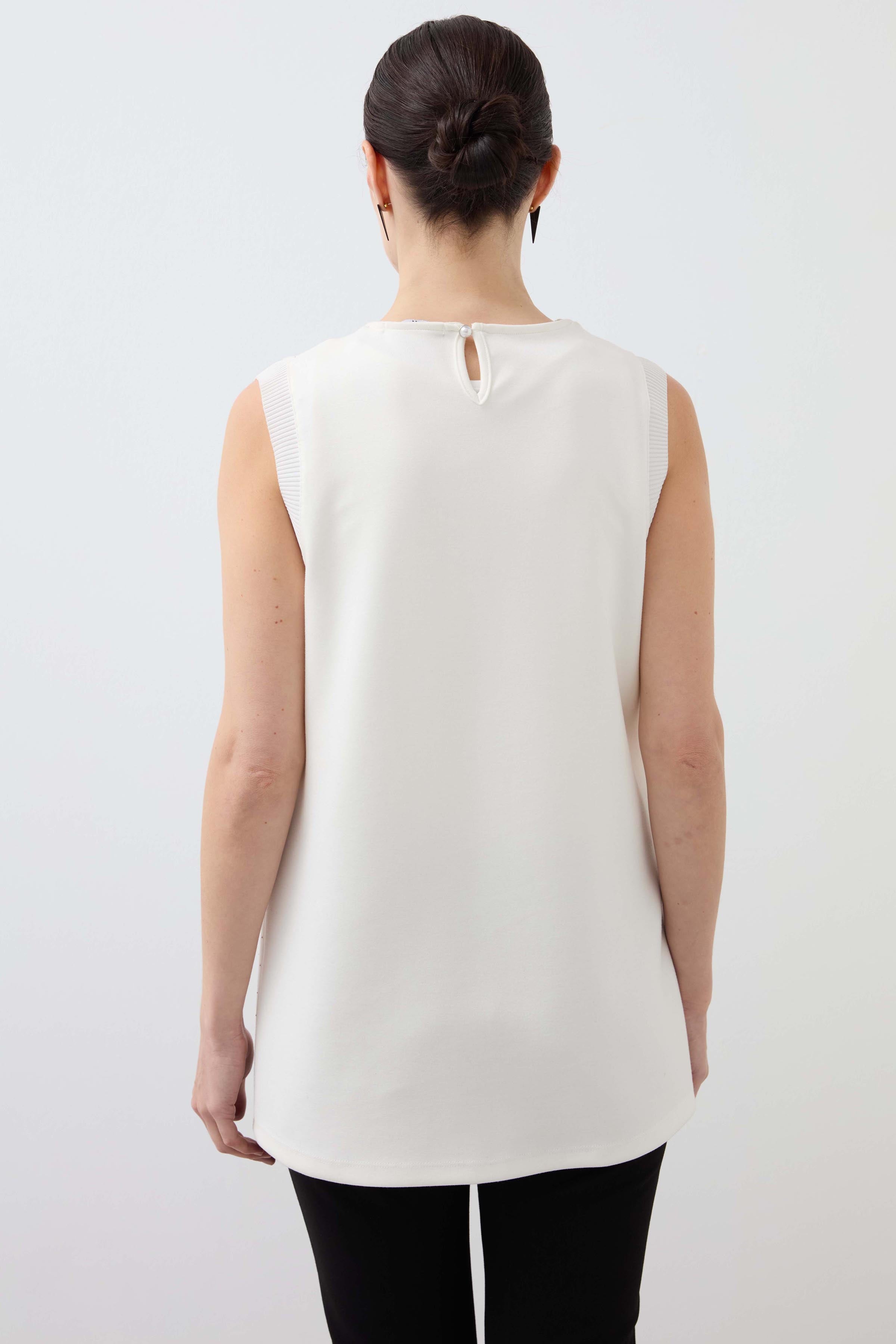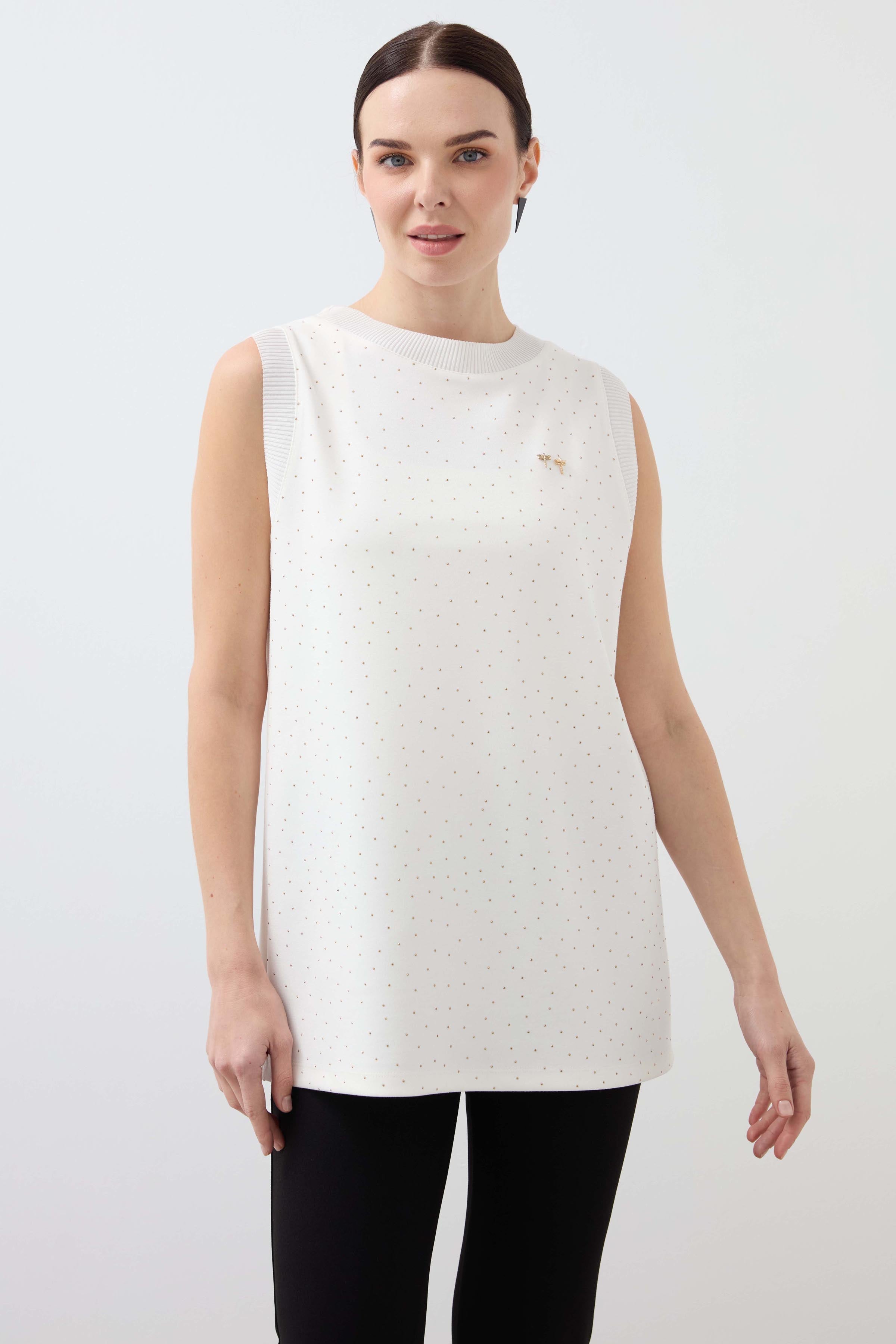 Ribbed Collar Sleeve Stoned Long Undershirt - Ecru