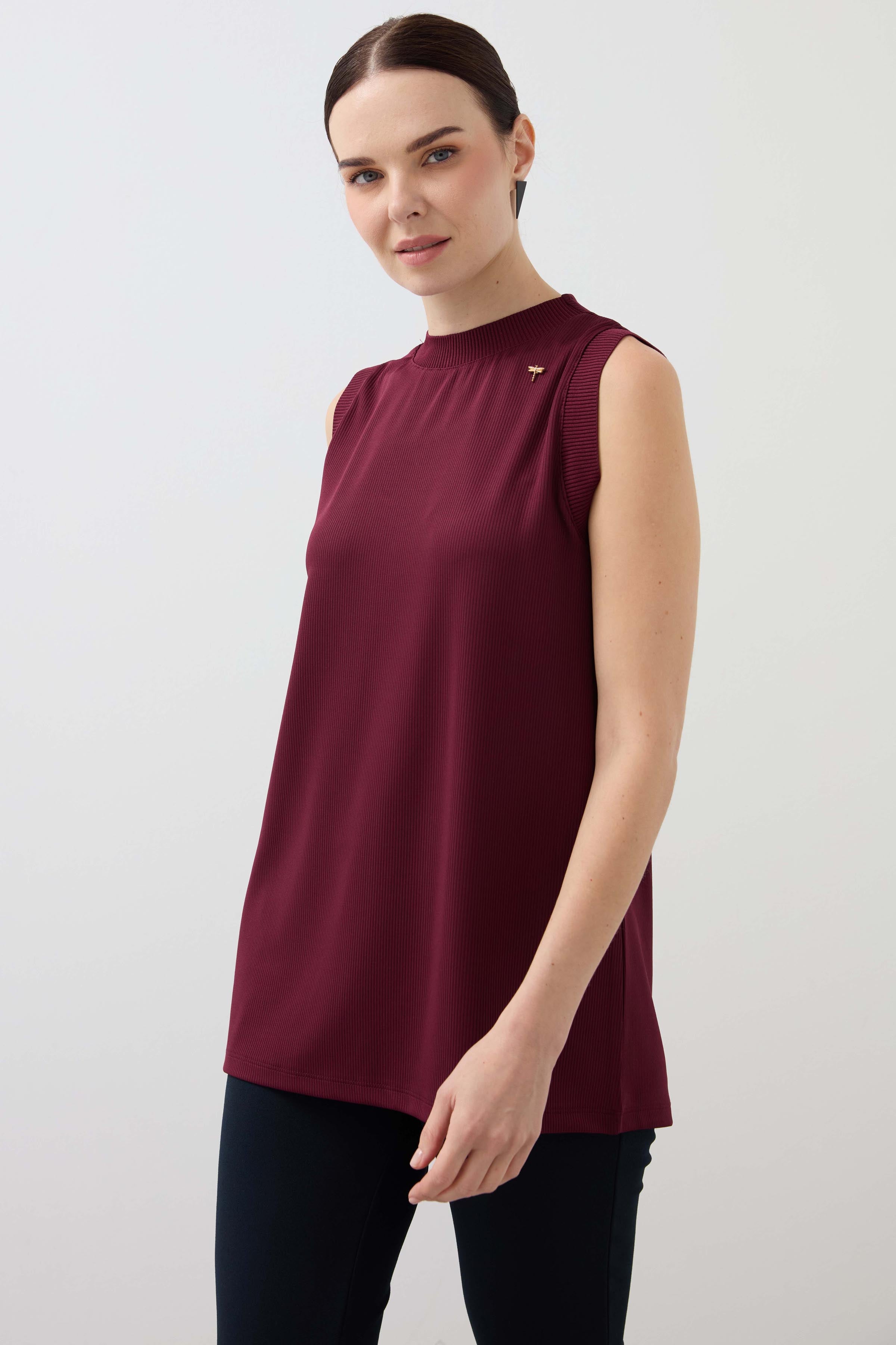 Collar Sleeve Ribbed Long Undershirt - Claret Red