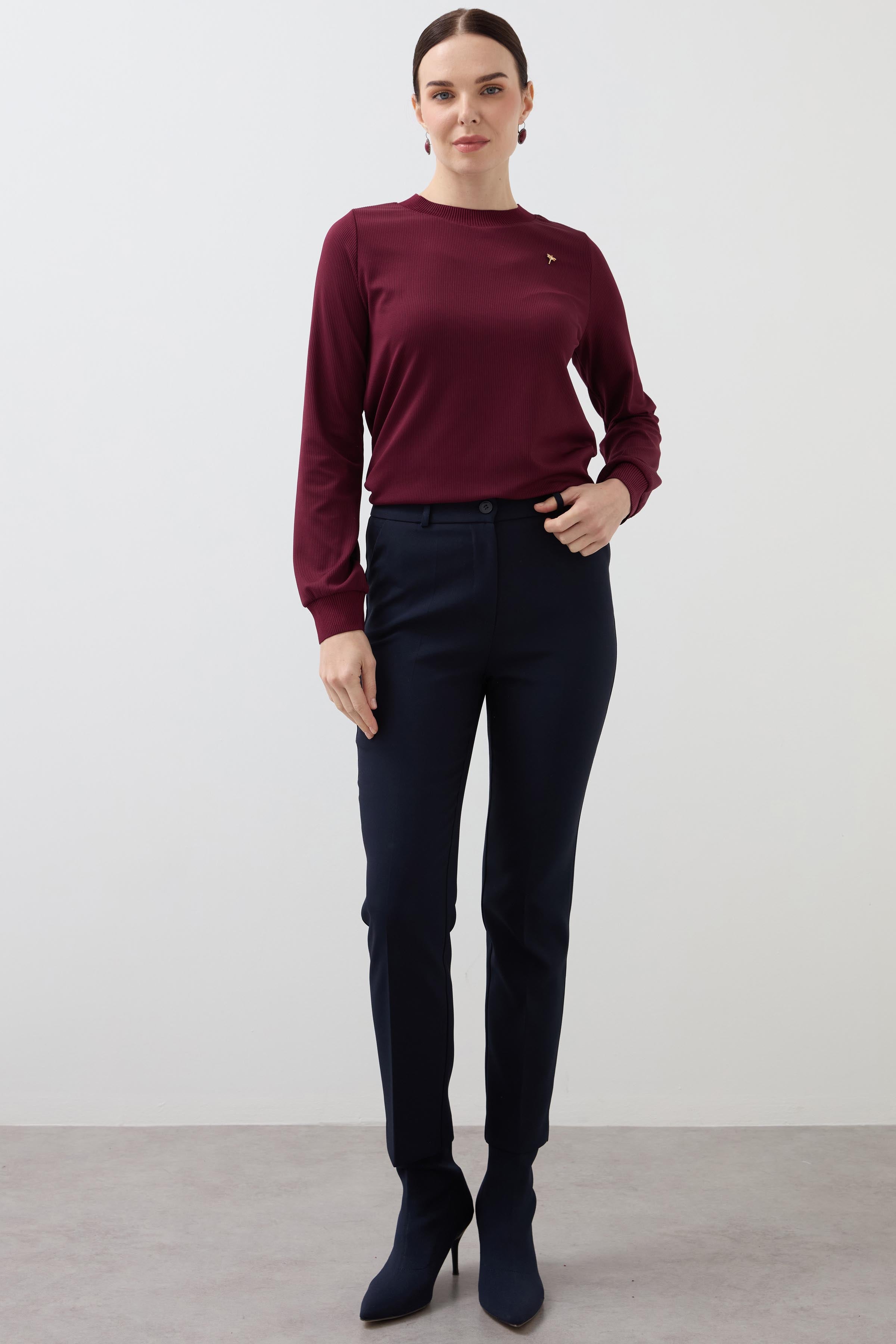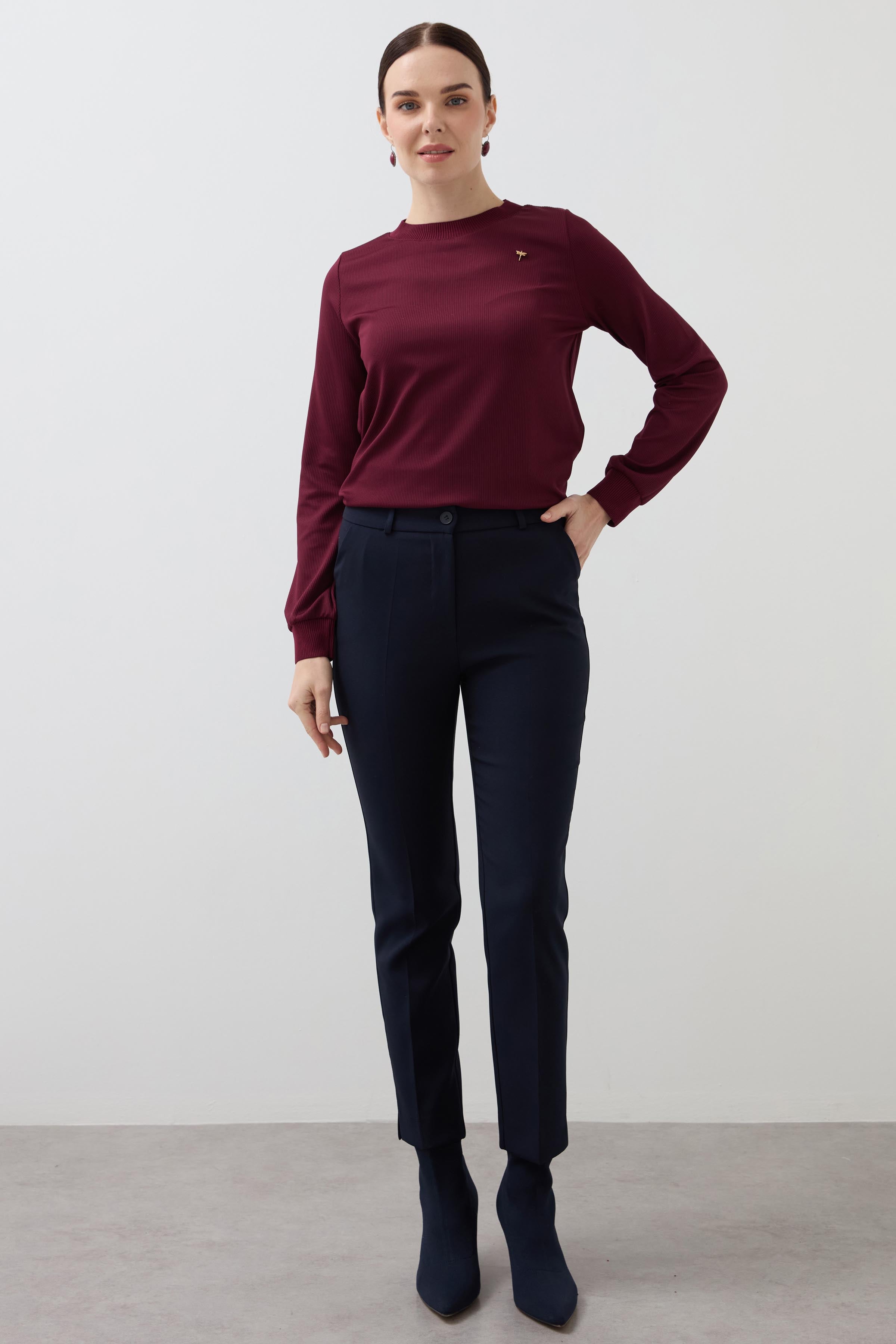 Side Pocket Classic Embroidered Trousers - Navy Blue